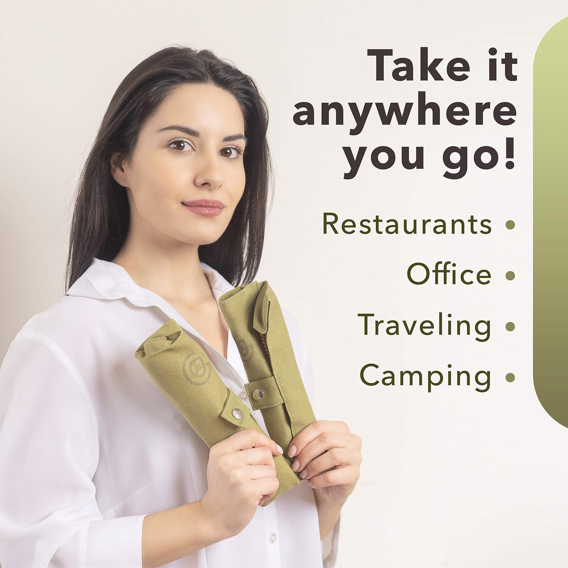 - Travel Ready Utensils: Keep your bamboo utensils reusable and handy with the included canvas bag. Perfect for the office, hiking, camping, or road trips