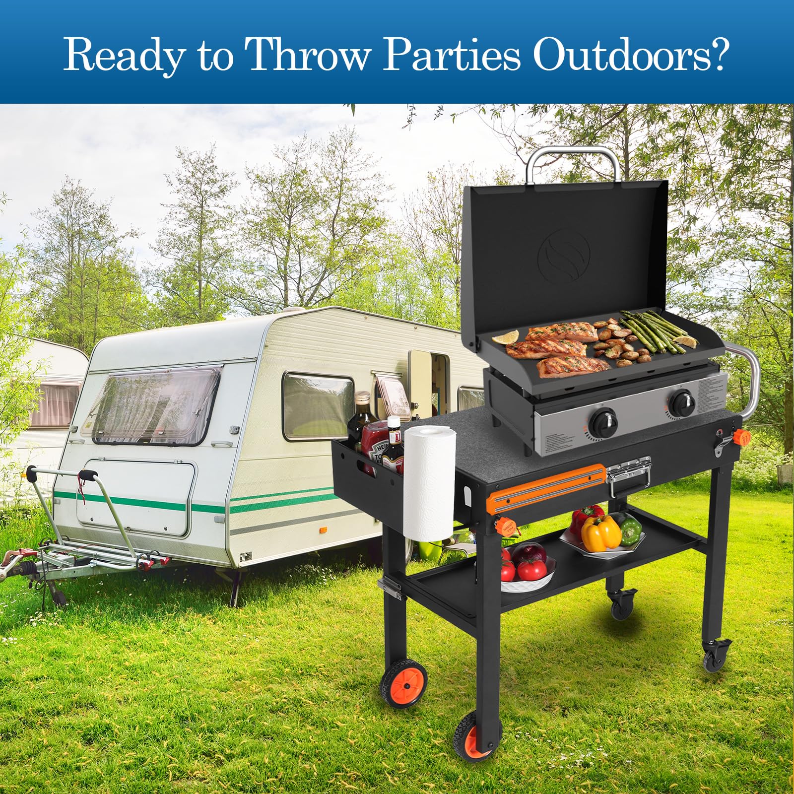 Grill Table Stand Cart for Blackstone Griddle - Universal Foldable Design Fits 17-22 Inch Grills and 12" Pizza Ovens, 20s Setup, 4 Wheels, Magnetic Strip etc (Camping, Backyard Cooking Accessories)