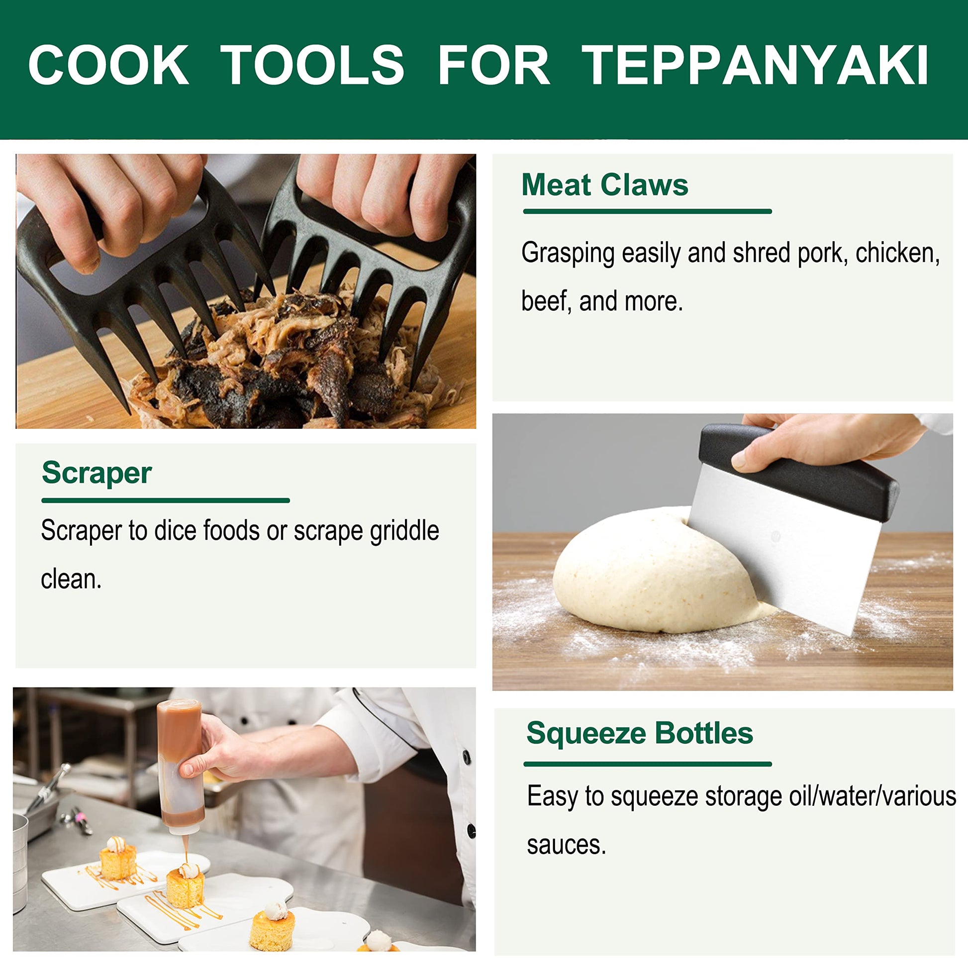 - Professional Chef's Choice - Featured the properties of anti-scratching and anti-slip which is relying on a combination of well-design, exquisite craftsmanship and solid construction, these griddle tools are used by professionals and establishments for their kitchen. With the complete flat top griddle accessories set, you could make delicious burgers, juicy steak, perfect pancakes and flavorful cuisines from start to finish with ease like a pro!