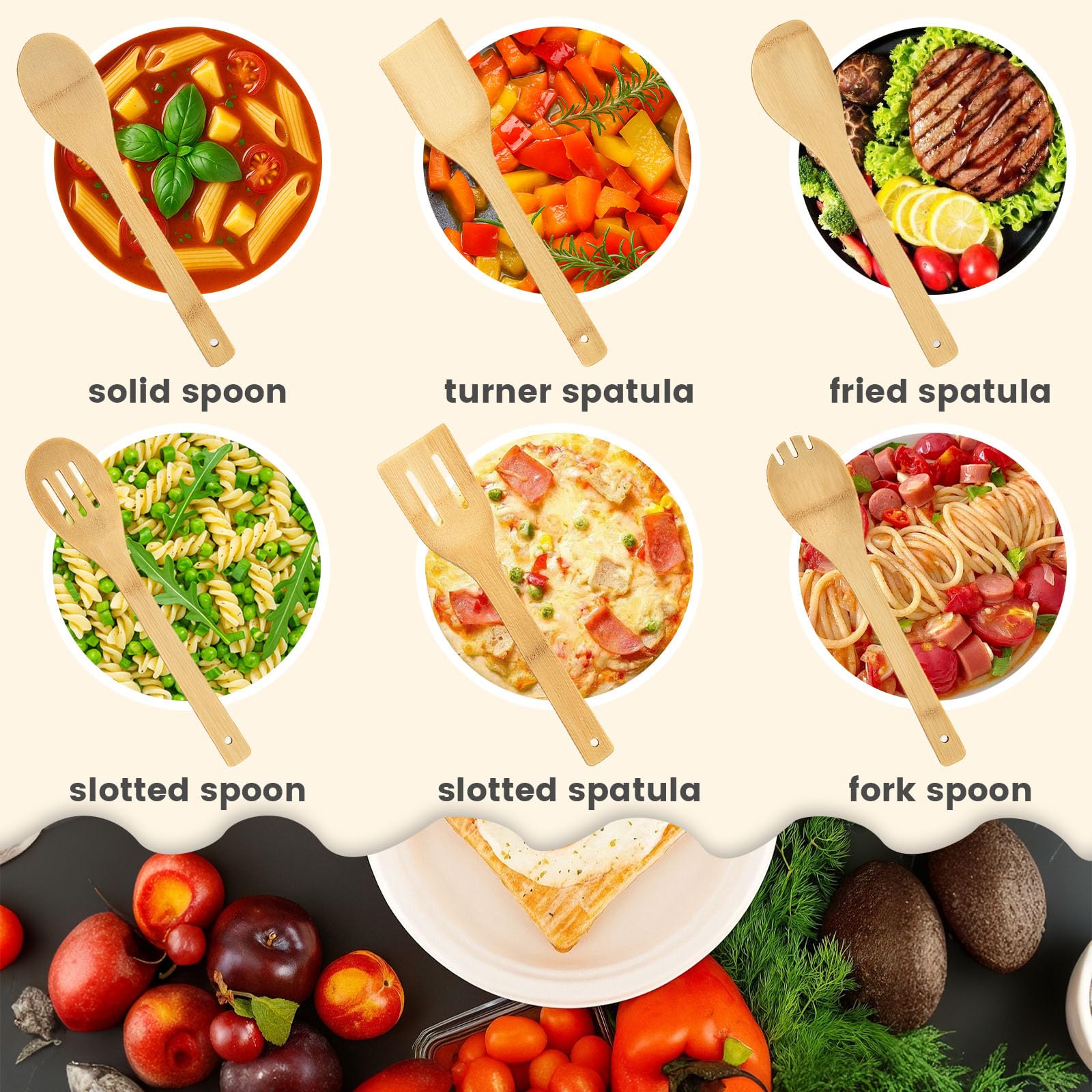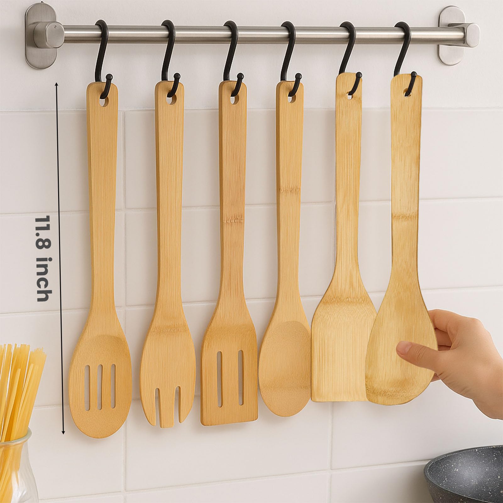 - High Quality – Made from natural bamboo, these bamboo utensils are safe, odorless, and free of coatings. Safe to use at high temperatures without releasing harmful substances, they resist wear, moisture — combining durability with a touch of elegance for your kitchen