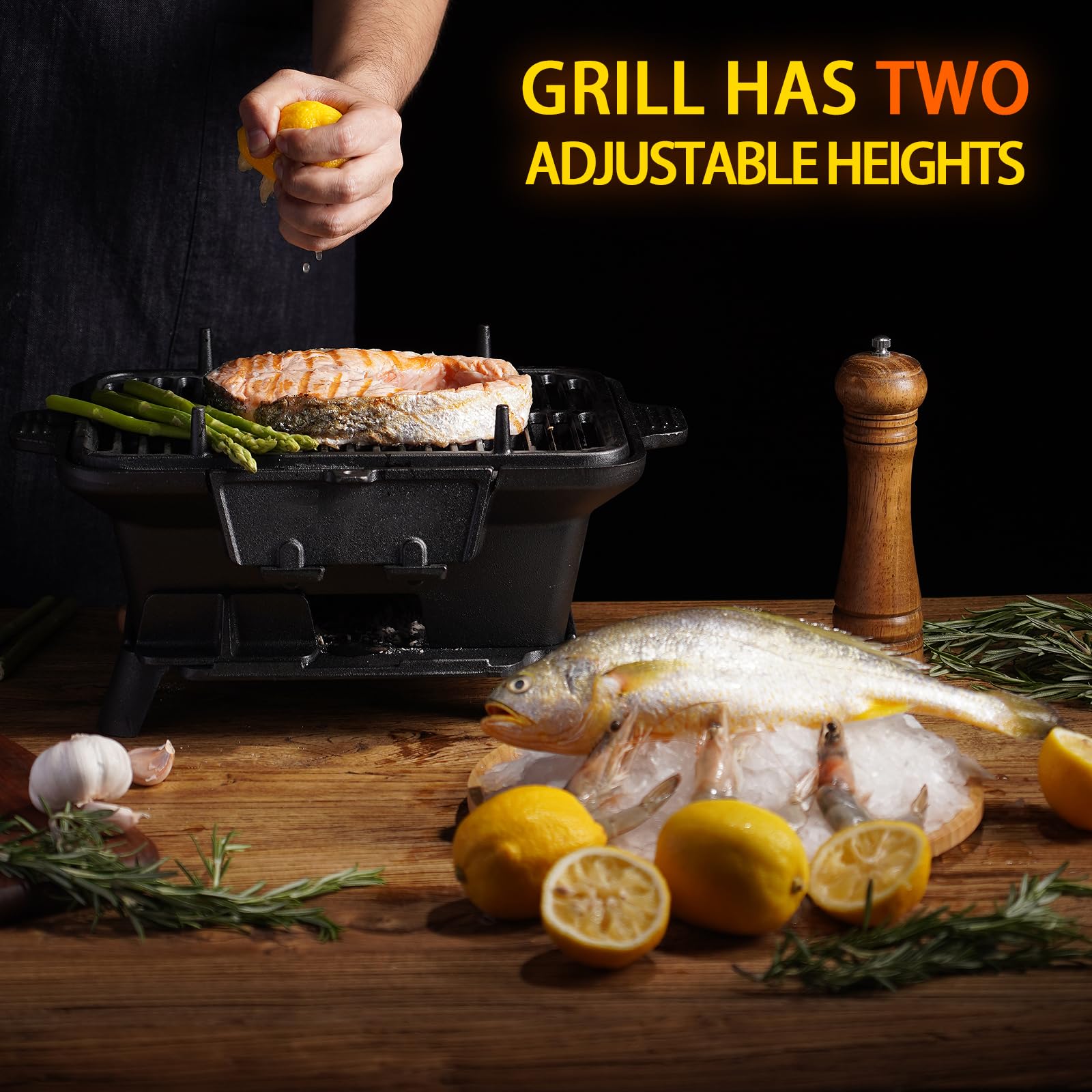 Details: Hibachi Grill Outdoor, Portable Small Charcoal Grill, 100% Cast Iron, Mini Japanese Yakitori Tabletop Skillet Grill Stove for Outdoor Camping - Coal Door, Draft Door