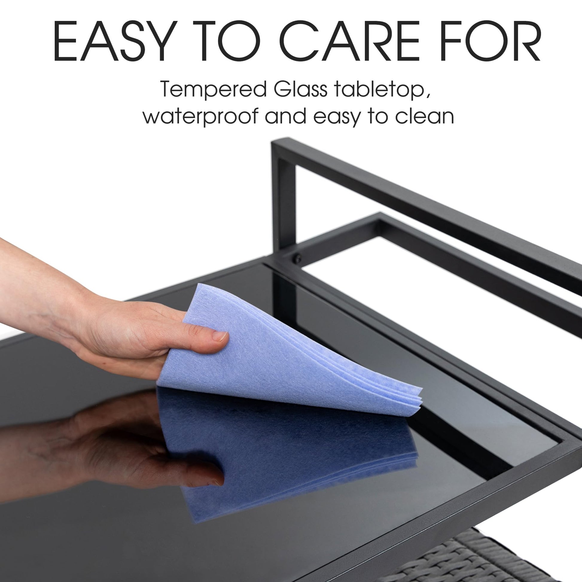- [STURDY METAL] The outdoor kitchen cabinet features an alloy steel bracket and a durable, easy-to-clean glass top. The cabinet is crafted from wicker, providing breathability