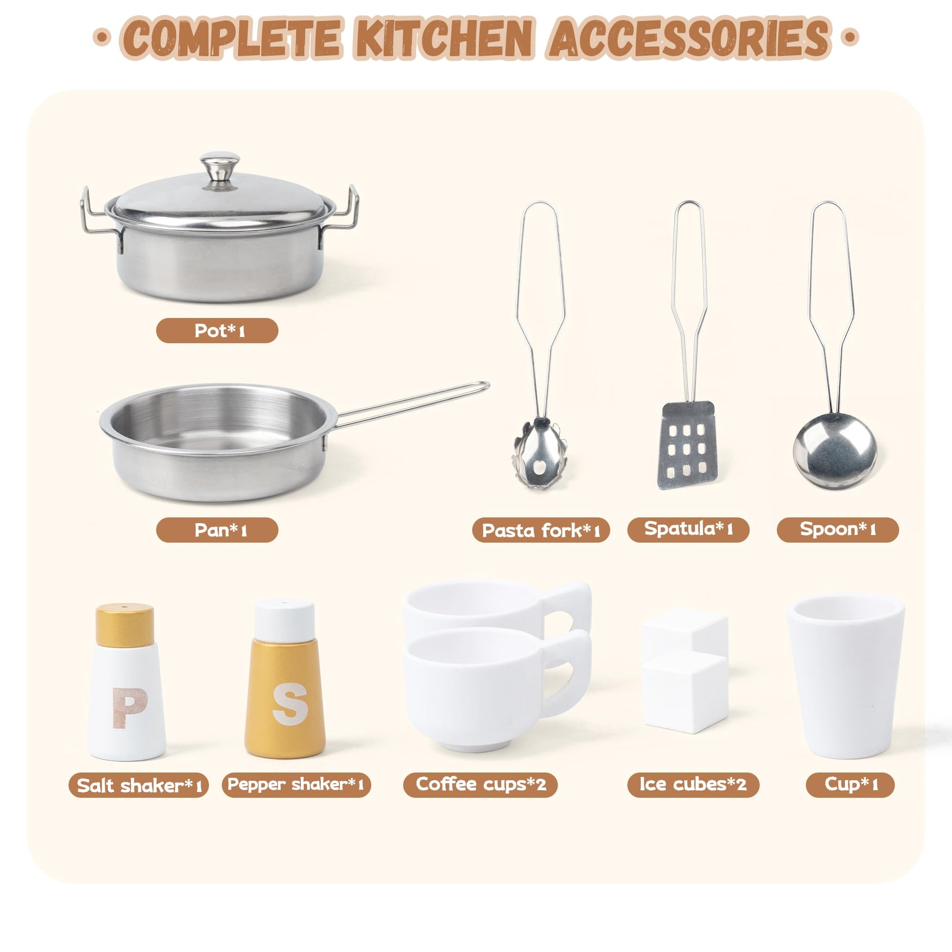 - Premium & Safe Wooden Design: Crafted from sturdy, BPA-free wood and non-toxic paint (ASTM/CPSIA-certified), this corner play kitchen is built to withstand years of imaginative play. Smooth edges and rounded corners ensure tiny hands stay safe while cooking up adventures