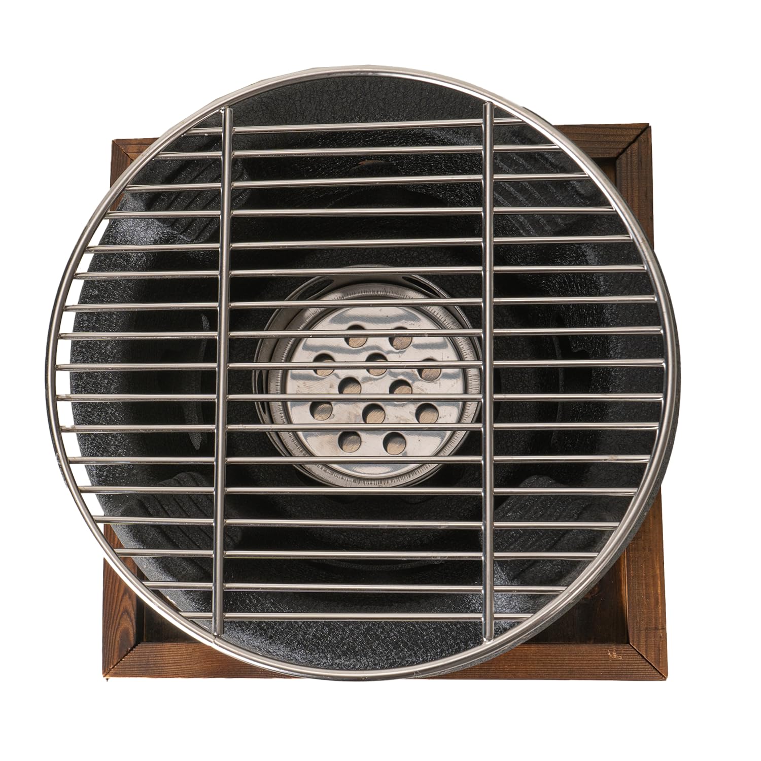 - [What's Included] Tabletop grill comes with a charcoal grill pot with wooden trivet base. The grill top has option of wire mesh or alumimum comal