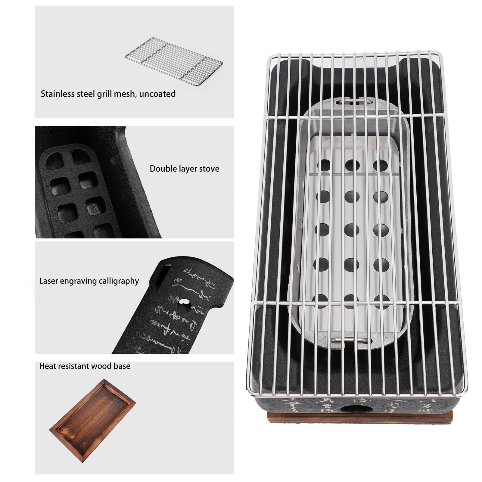 Jauarta Japanese BBQ Grill Stove Charcoal Barbecue Stove Rectangle Calligraphy Quick Heating Aluminium Alloy Wire Grill Base for Camping (XL)