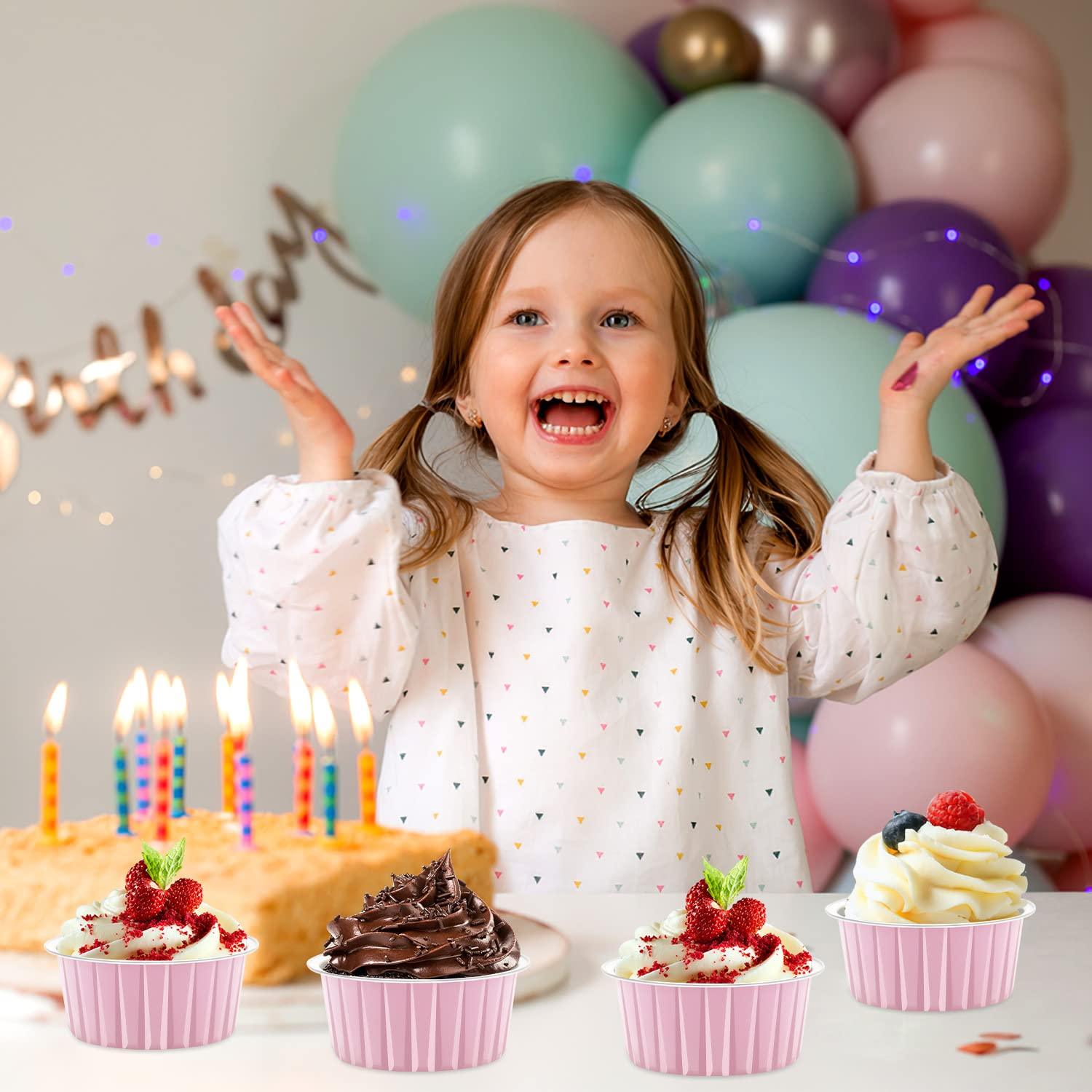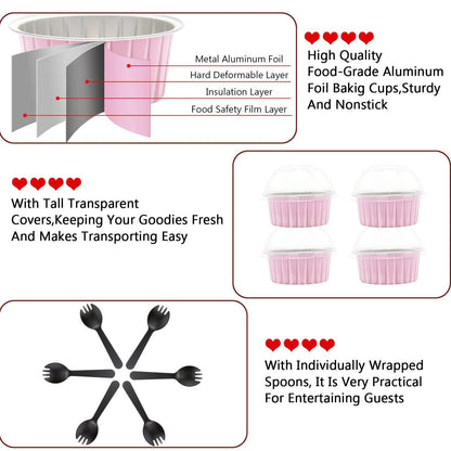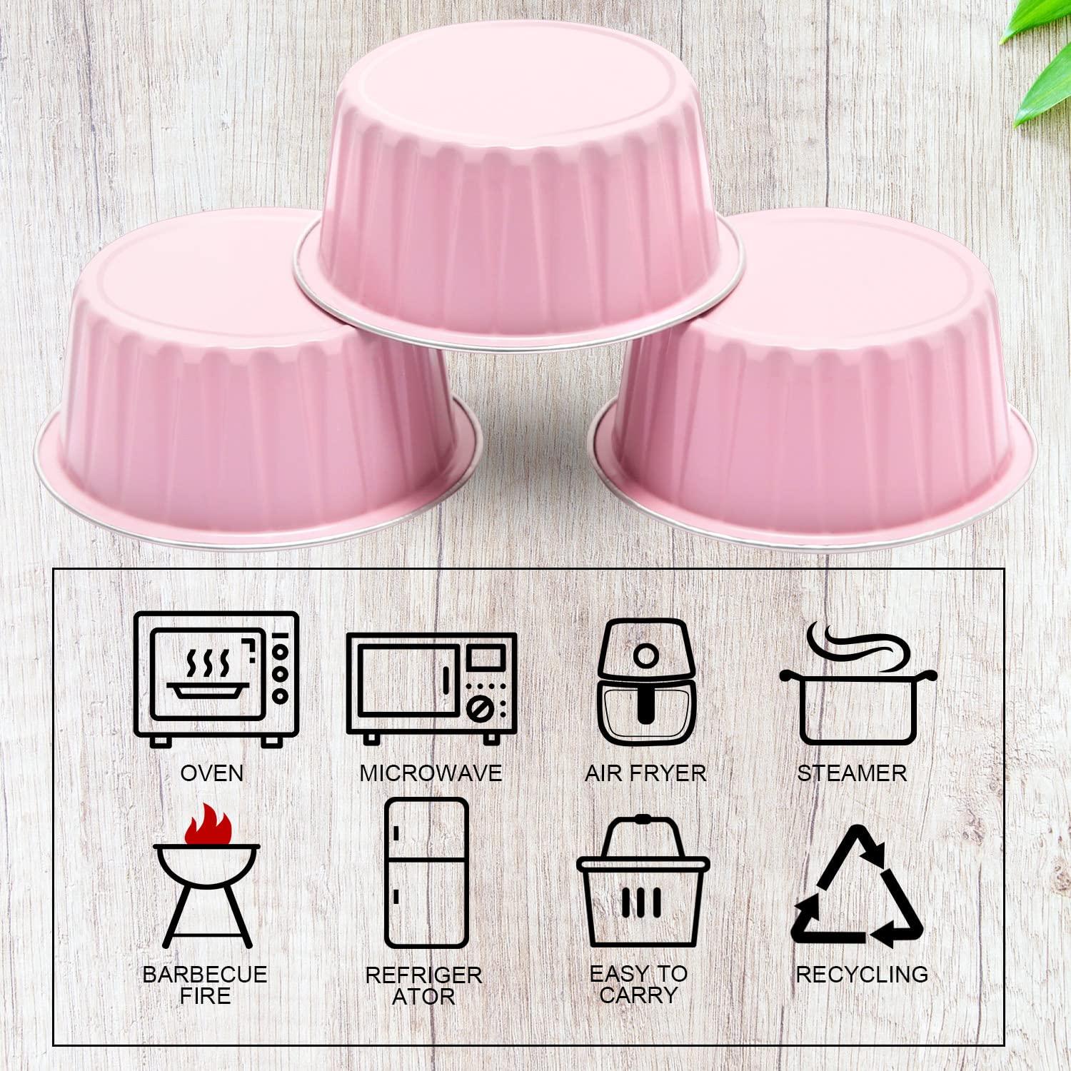 Jumbo Muffin Liners with Lids 50 Pack,Free-Air 5oz Aluminum Foil Cupcake Cups Muffin Tins,Disposable Ramekins Cupcake Baking Pans Cupcake Holders for Custard Mini Pie -Pink