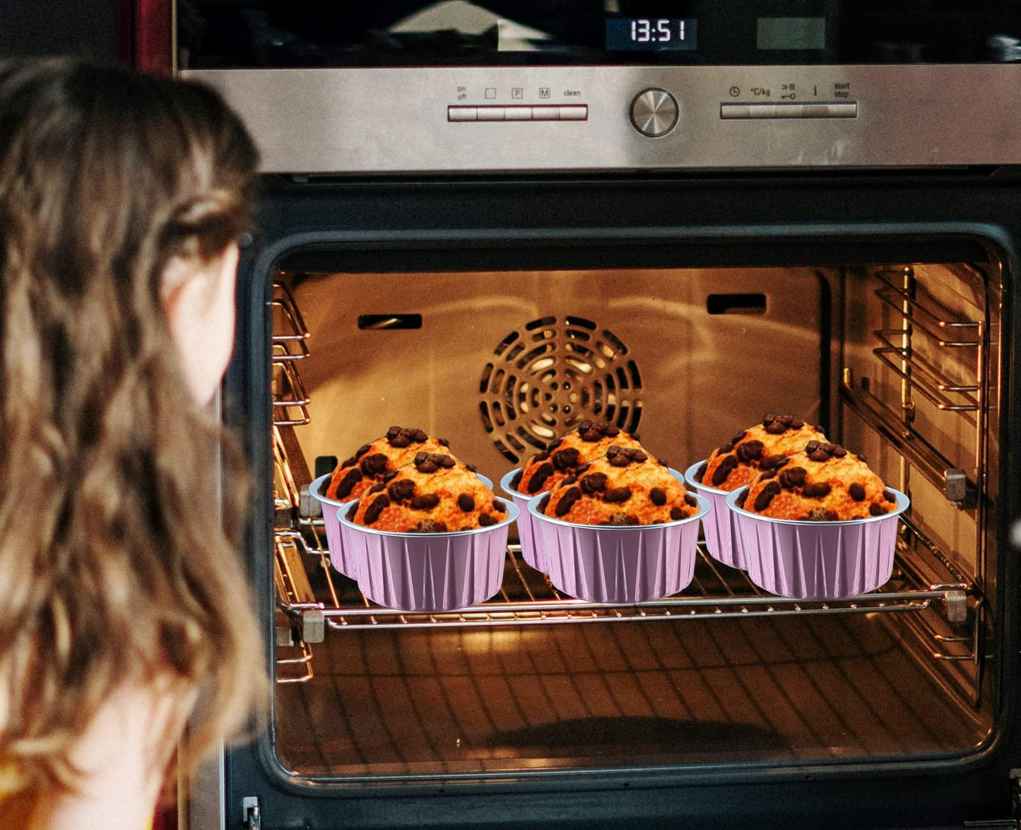 - 【No Baking Tray Needed】-These muffin cups are made of thick food-grade aluminum foil,which enable them directly without baking tray required.The cupcake baking pans are non-toxic,microwaves and oven safe, and can withstand temperatures up to 250℃/482℉,please allow cups to cool prior to applying lids. (NOTE:The clear lids are not heat resistant!)