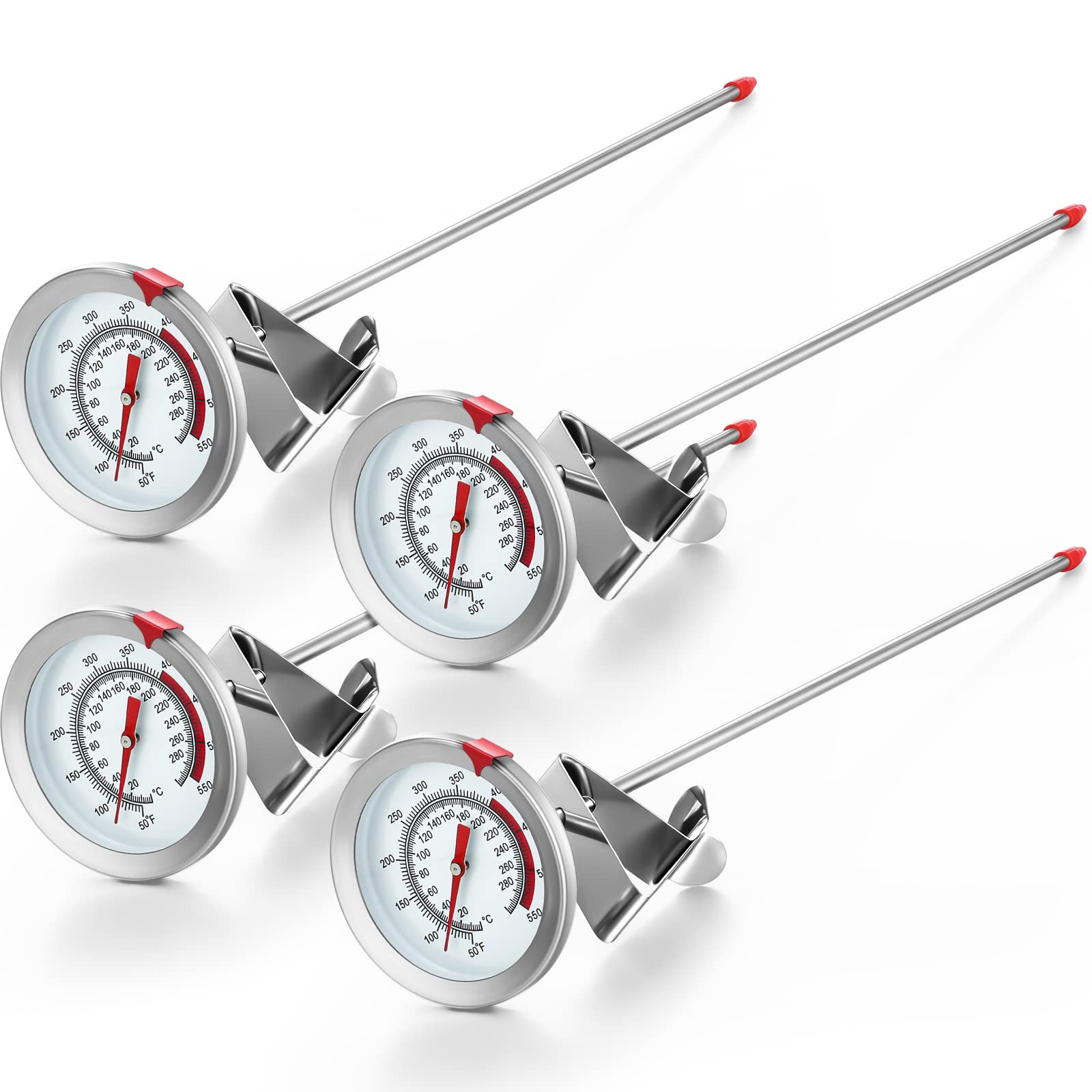 Kanayu 4 Pcs Deep Fry Thermometer with Pot Clip, 12'' Long Stem Oil Thermometer, Stainless Steel, Analog Display