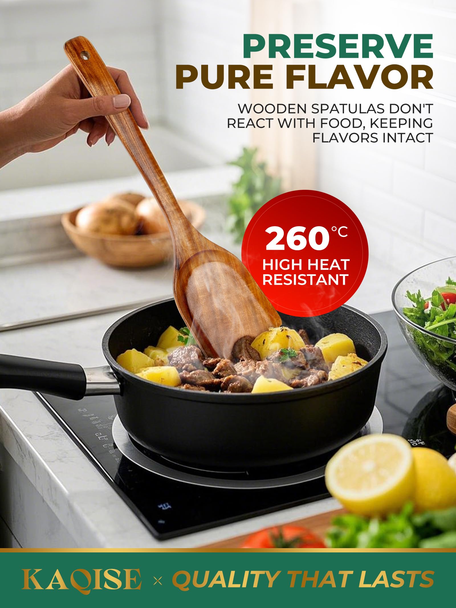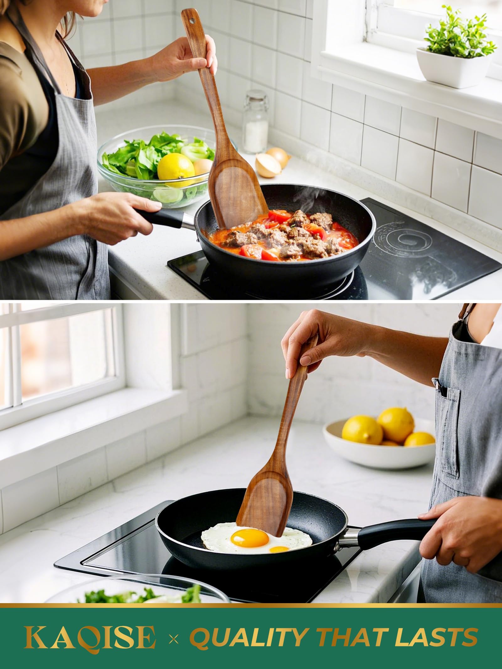 - 【Non-Scratch, Non-Stick Design】: Crafted from high-quality Teak Wood, these spatulas are perfect for use with non-stick cookware. The smooth, durable wood ensures your pots and pans remain scratch-free, offering a safer, more gentle option than metal or plastic spatulas. Enjoy cooking without worrying about damaging your precious cookware.