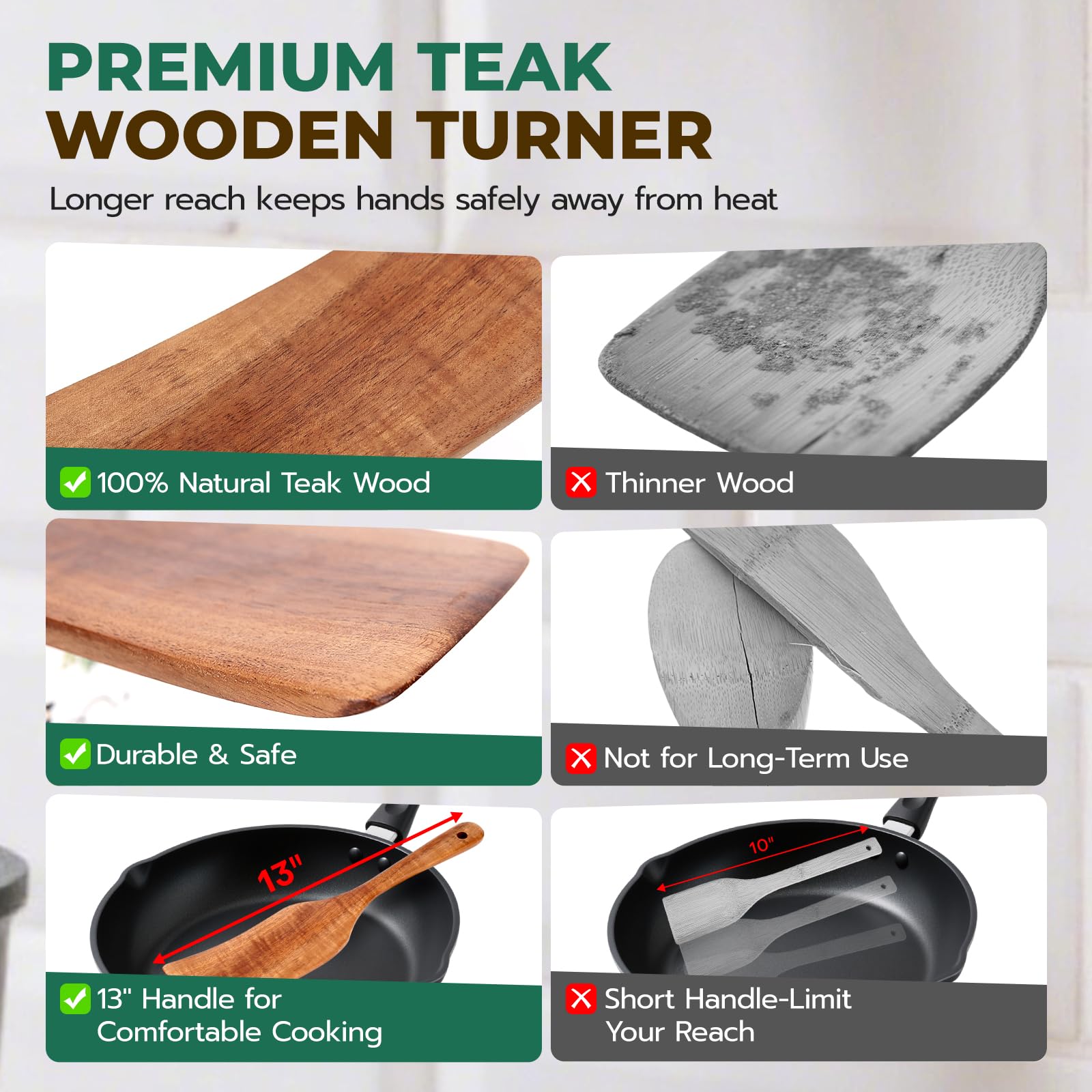 - 【Versatile Kitchen Essential】From mixing batters, dividing, tasting, turning to serving food, this Wood Turner is a versatile tool for all your kitchen tasks. Their blades are flatter and longer in order to maneuver under food easily in pots and pans. The sturdy construction ensures reliable performance for both amateur and professional chefs.