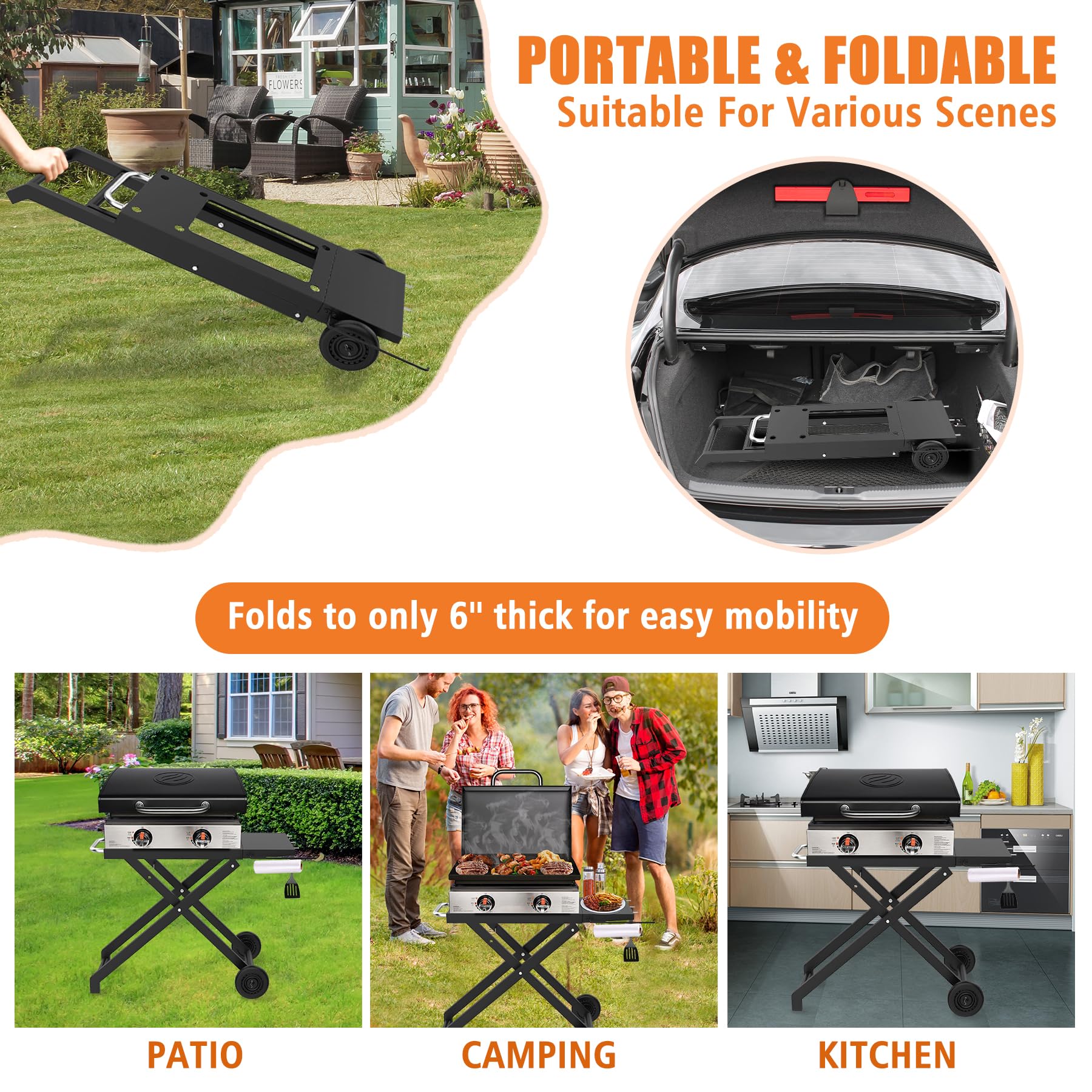 KEESHA Foldable Grill Stand for Blackstone 22'' and 17'' Griddle 1814 1971 1832 1666 1840, Portable Grill Cart Table for Outdoor and Indoor with Wheels