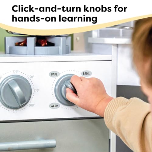 - MADE OF WOOD and EASY ASSEMBLY: Kitchen is made of premium, sustainable materials for long-lasting play you can feel good about. Make assembly easier with more help. Two people can set up this item in approximately 2 hours or less.