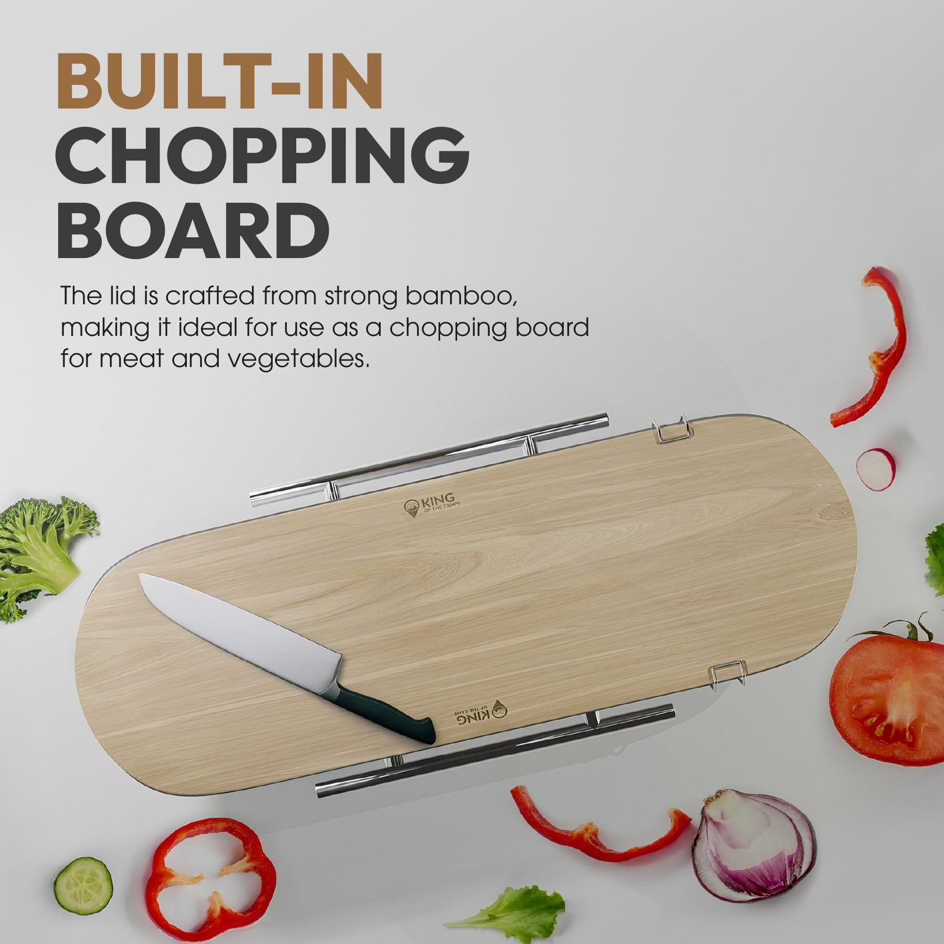 - EVERY NEED CONSIDERED - The two-part grids securely hold food in place, allowing for quick flipping and perfect grill marks. Unlike conventional grills, these grids prevent items like shrimp from falling through. They also simplify transferring food from the barbecue grill to your plate without spills. The lid is crafted from strong bamboo, making it ideal for use as a chopping board for meat or vegetables. This versatile conception makes grilling easier and more enjoyable.