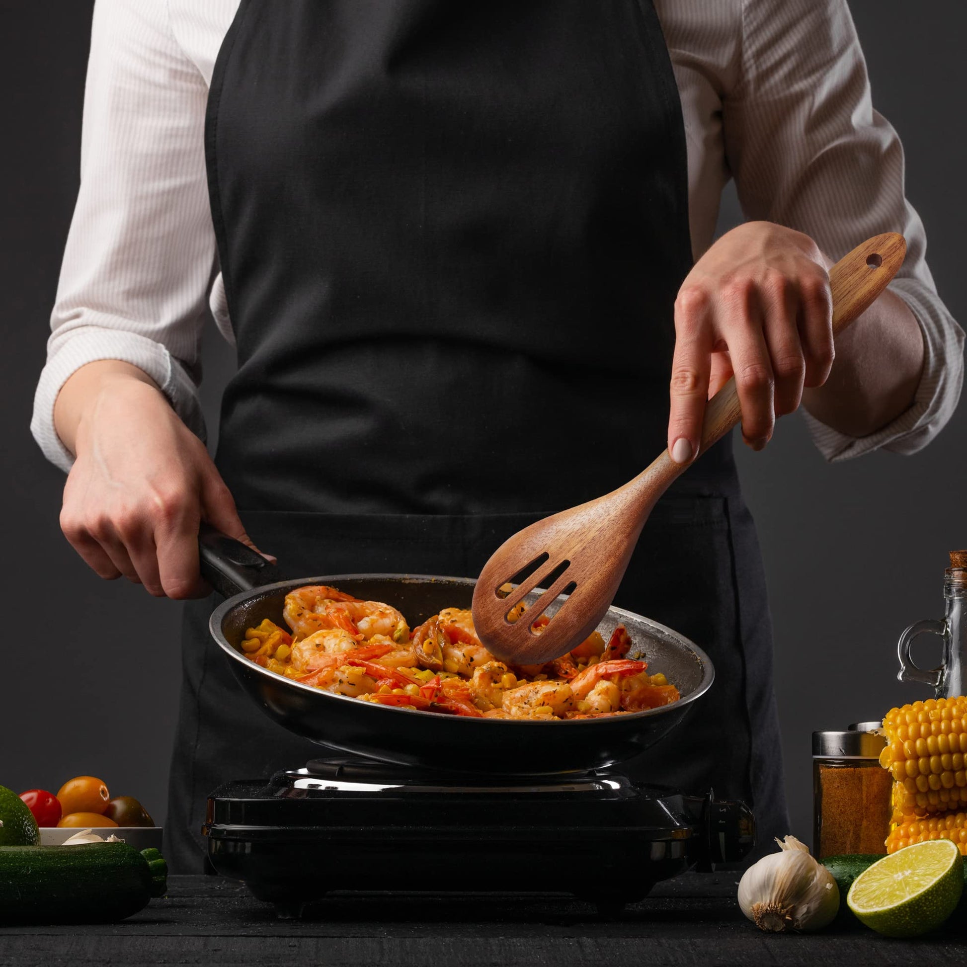 - 5-piece set for all cooking needs: If you're looking for the best wooden spoons for cooking your favorite recipe, look no further. Our 5 Piece wooden spoon set is perfect for stirring, mixing, draining, and serving. This set includes a slotted spoon, spatula set, and pasta server.