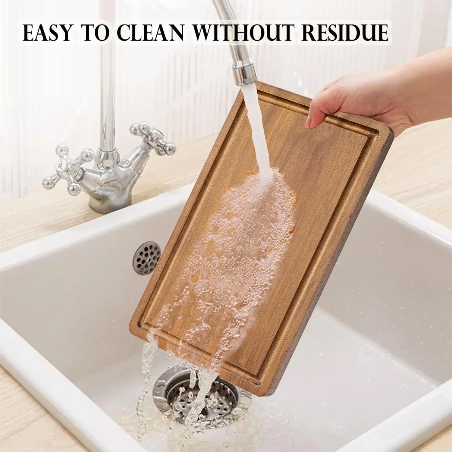 - PRECISE AND SOLID CONSTRUCTION: The cutting board is described as lightweight yet stable with 0.8" thickness, indicating sturdy construction.The heavy weight of the board ensures sturdiness and makes it non-slip when chopping. Recommend adding regular oiling to this acacia cutting board to maintain its appearance condition.