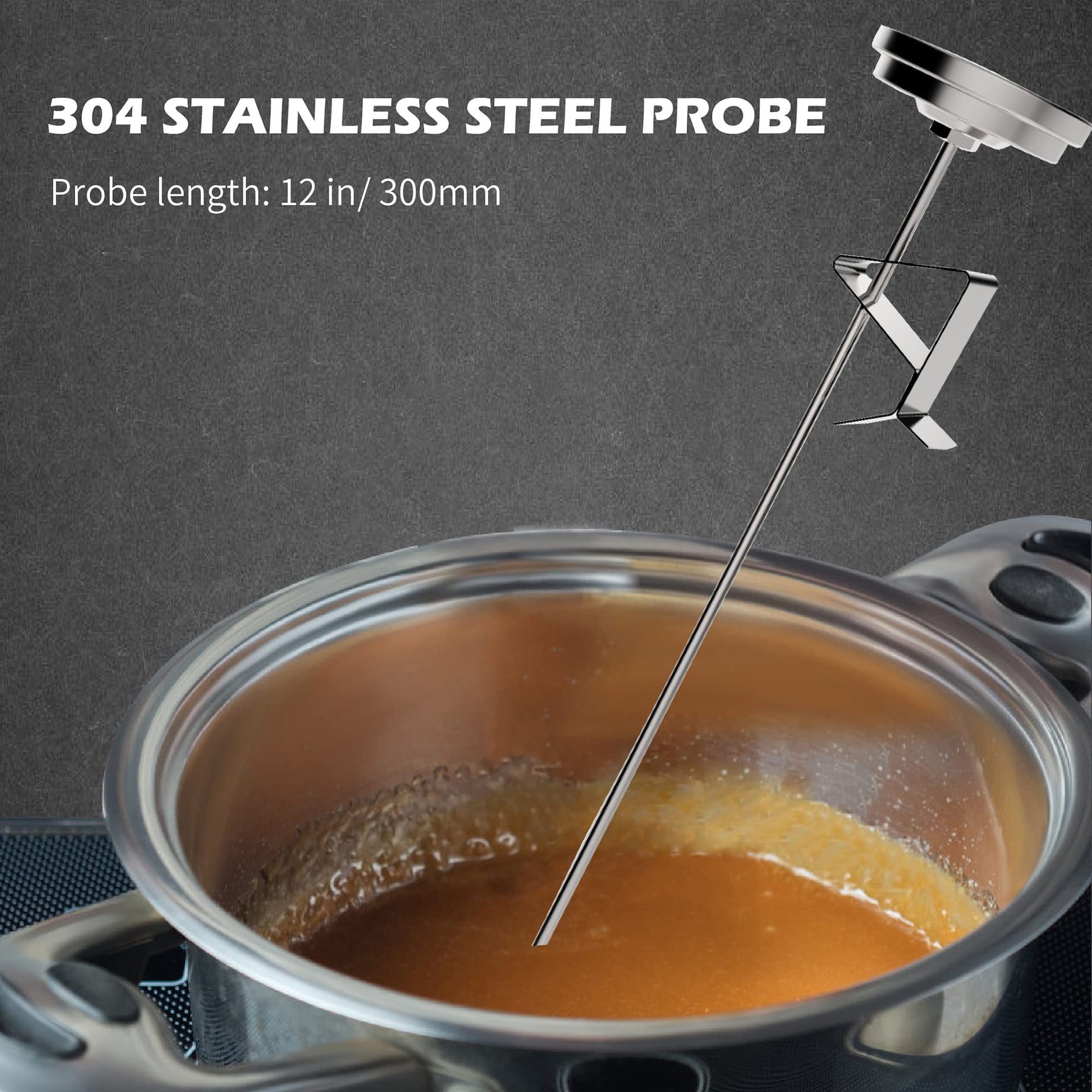 KT THERMO Oil Deep Fry Thermometer Candy Thermometer with 12 inch Stem and Pot Clip,Instant Read Food Meat Thermometer for Smoker Baking Grilling Liquid (Stainless Steel)