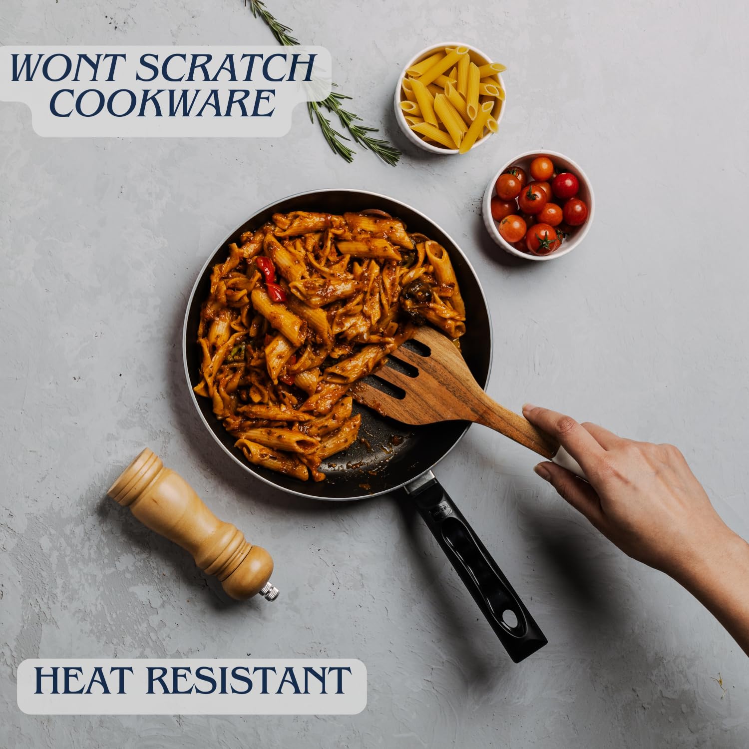 - HEAT RESISTANT, DURABLE & LIGTHWEIGHT: This cooking utensil set will not conduct heat and protect your hands from burns. These wooden spoon will not melt or transmit heat unlike plastic, metal, silicone cooking utensils. Acacia Wood makes them more durable than Bamboo cooking utensils. This spatula set is lightweight and will not strain your hands.
