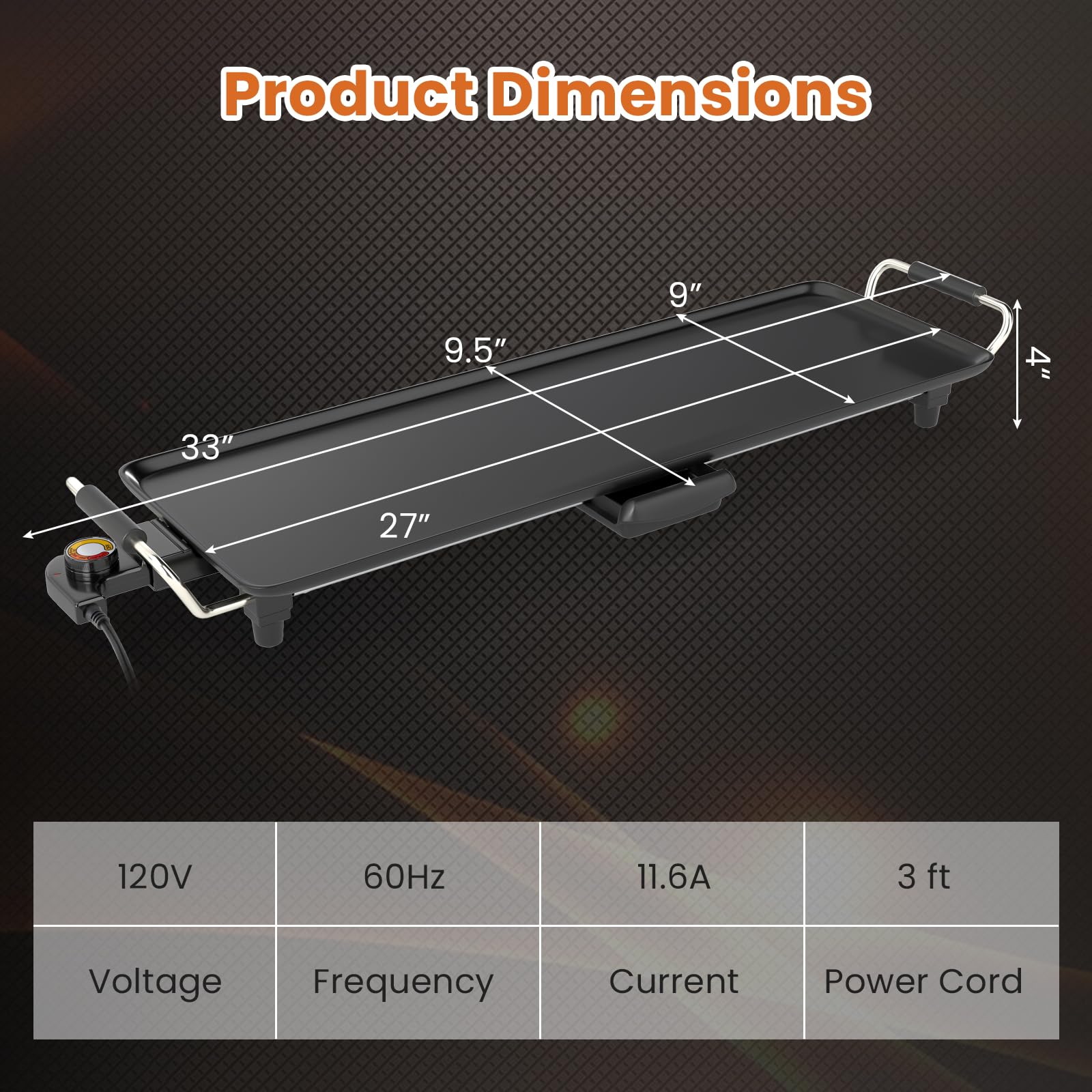 LDAILY Extra Large Nonstick Electric Griddle, Teppanyaki Grill BBQ W/ 4 Adjustable Temperature, Even Heating & Handles, Long Table Top Pancake Griddle Grill for Indoor & Outdoor Party, Camping(27’’)