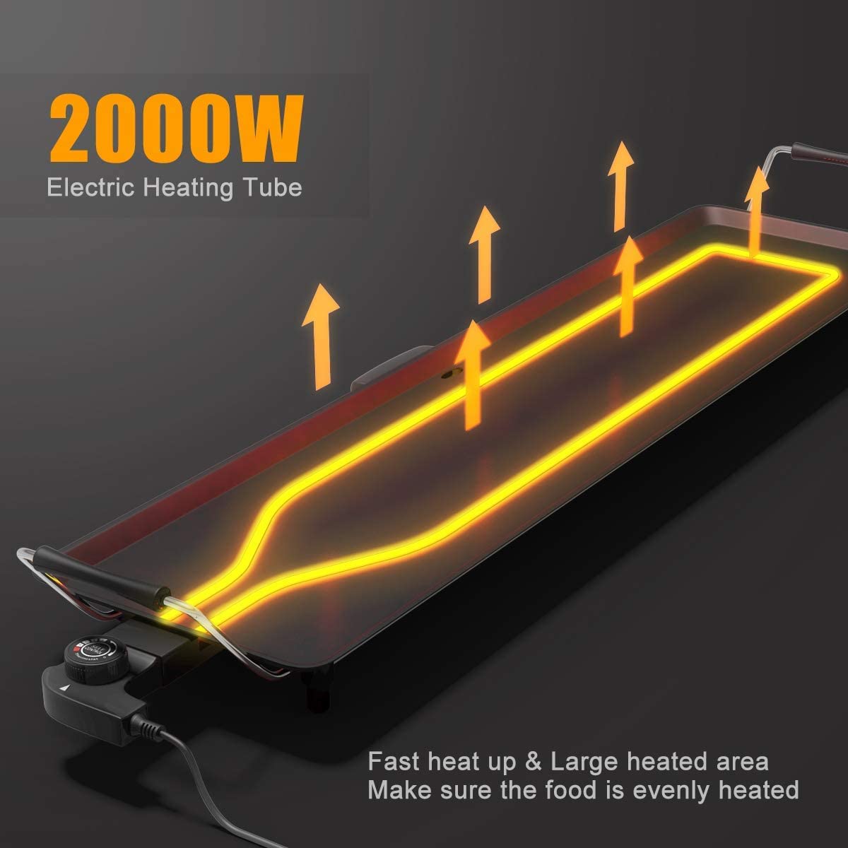 - 【Handles & Non-slip Feet】There are 2 handles on each side with insulated cover for convenient moving without heating or burning your hands. Furthermore, our teppanyaki table grill is equipped with 6 anti-slip feet, which provides more stability and protect your table from heat meanwhile.