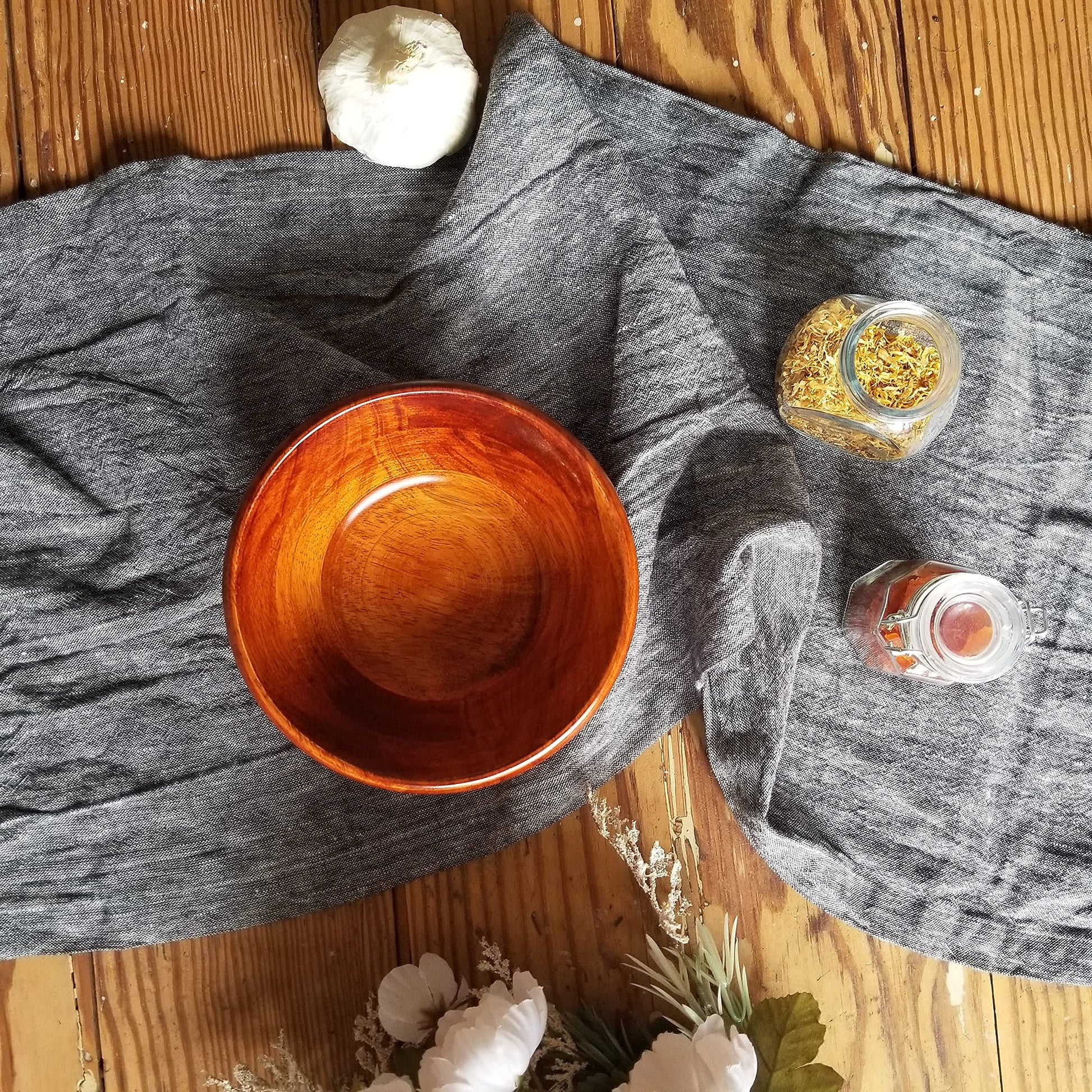 Details: The bright cherry finish on this carefully crafted bowl adds warmth and character to any space. Pair with lighter woods or cool marble as a stylish accent. All of our cherry finish bowls are made from plantation grown, sustainably harvested beechwood. Let these durable bowls take center stage at your family table for years to come. Hand wash with a mild soap and cool water. Do not soak. Do not put in the dishwasher, microwave or refrigerator. Extreme changes in temperature will cause the material to crack over time. Dry thoroughly. Occasional use of mineral oil will help maintain appearance.