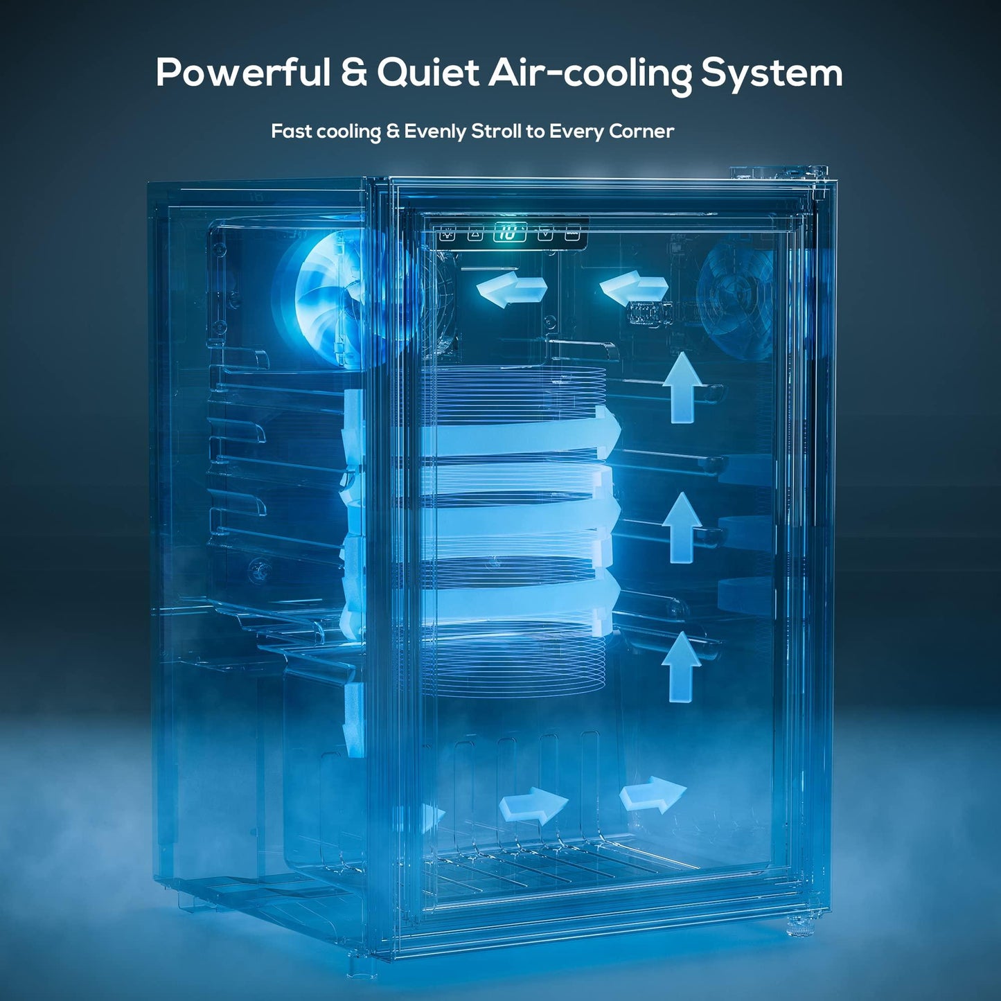 - 【Advanced & Quiet Cooling System】Powerful compressor for fast cooling, built-in air cooling system drives air circulation, allowing the cold air to walk evenly to every corner of the beverage cooler, cooling wine and drinks to the optimal temperature. This beverage refrigerator operates very quietly and without vibration, which will not affect the daily work, rest nor disturb the sediment in the wine.