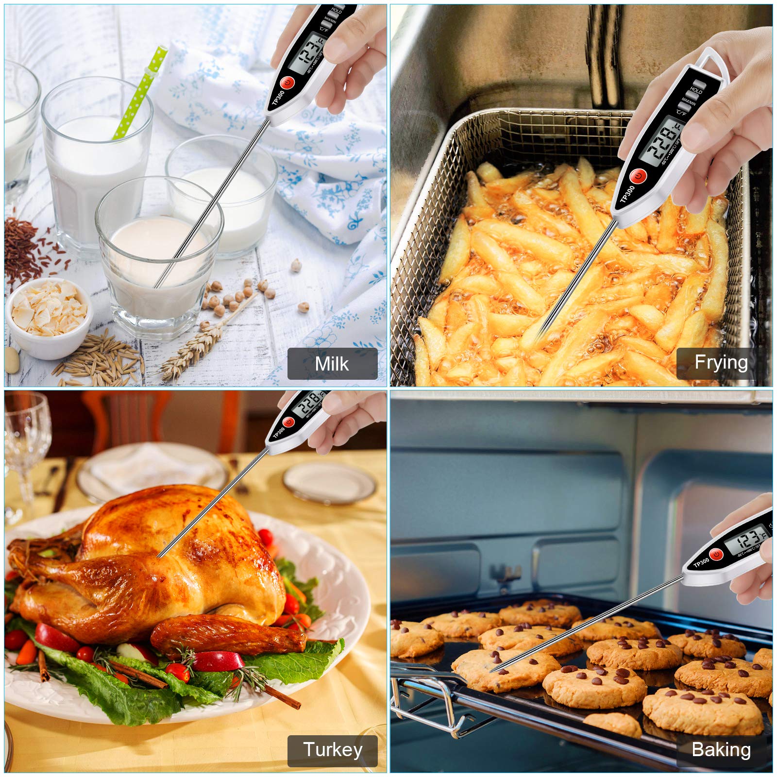 - Instant read meat thermometer equip with 4-5 Seconds reading out speed brings you accurate and healthy temp, digital meat thermometer range -58℉ ~ +572℉(-50°C ~ 300°C)