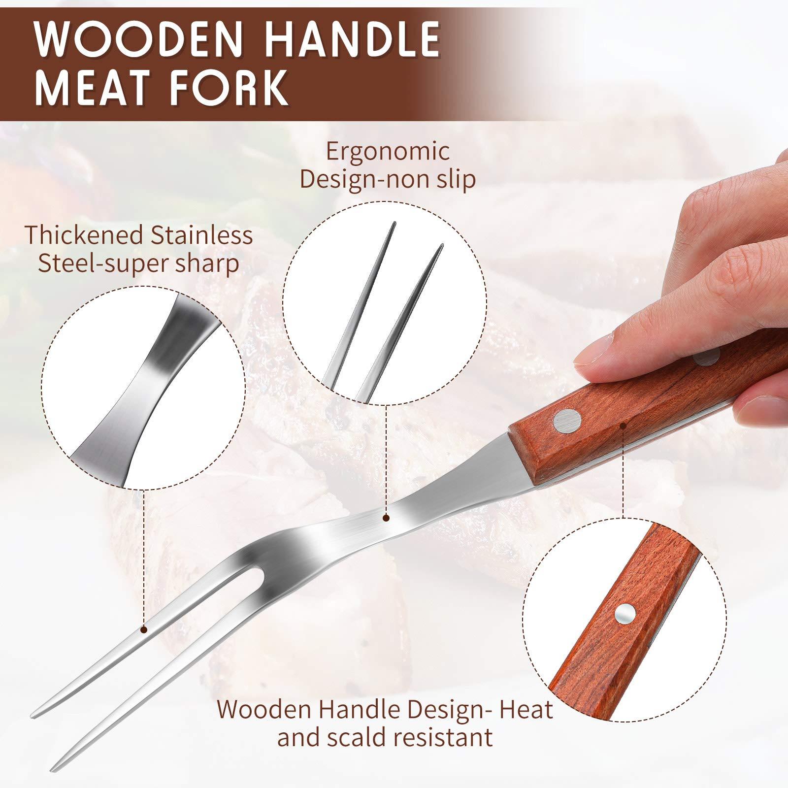 - Meat forks set: you will receive 2 pieces of meat forks, suitable for kitchen cooking and barbecue use, wooden handle is comfortable to hold, stainless steel fork head is sturdy and durable, not easily damaged, enough quantity and reliable materials to facilitate your different use needs