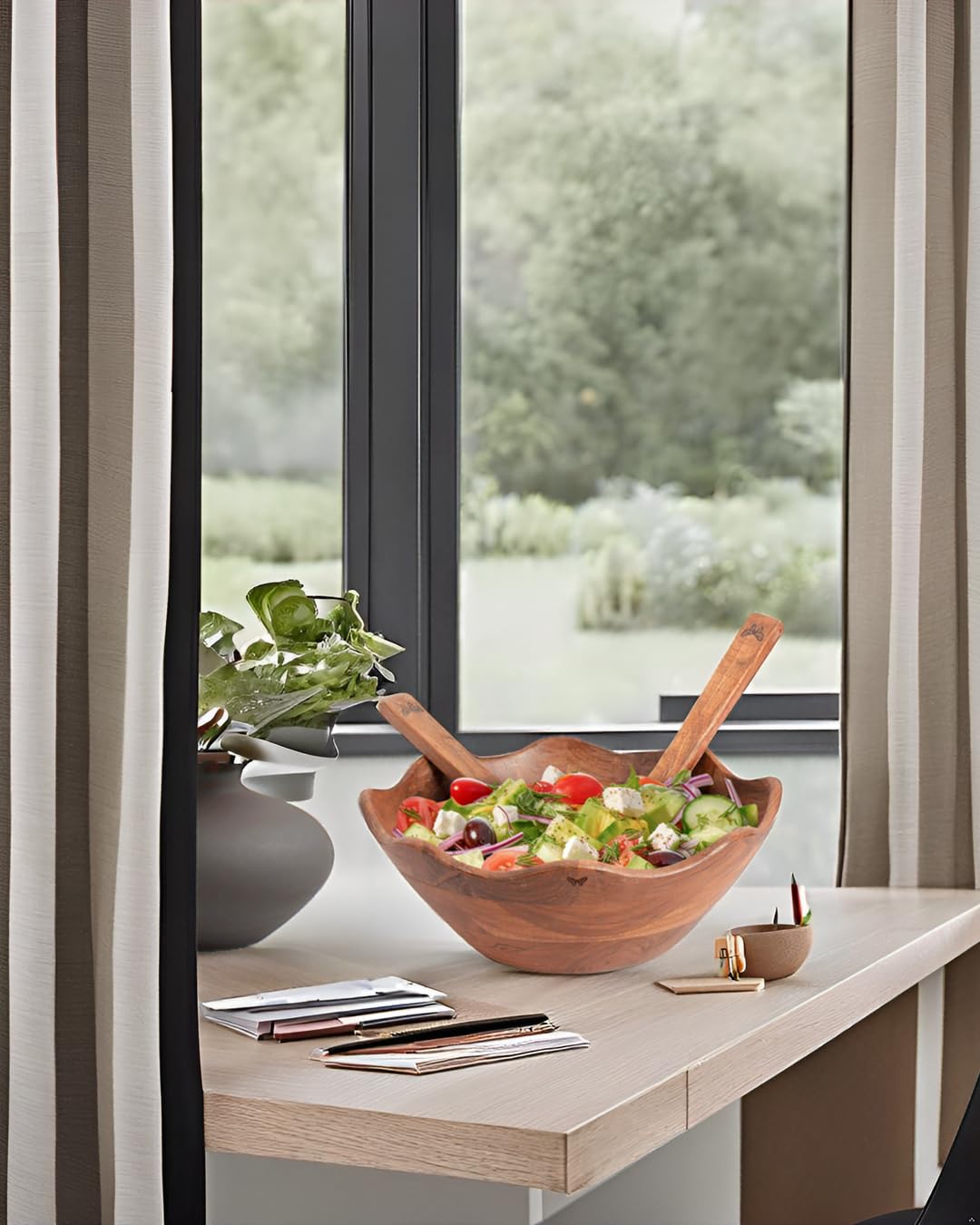 - PREMIUM ACACIA WOOD: Crafted from high-quality, durable acacia wood, this wooden salad serving bowl is 2X resistant to cracks, stains, and wear & tear vs bamboo and other wooden bowls. Sustainably sourced, it adds a natural touch to your kitchen while ensuring safe, long-lasting use.