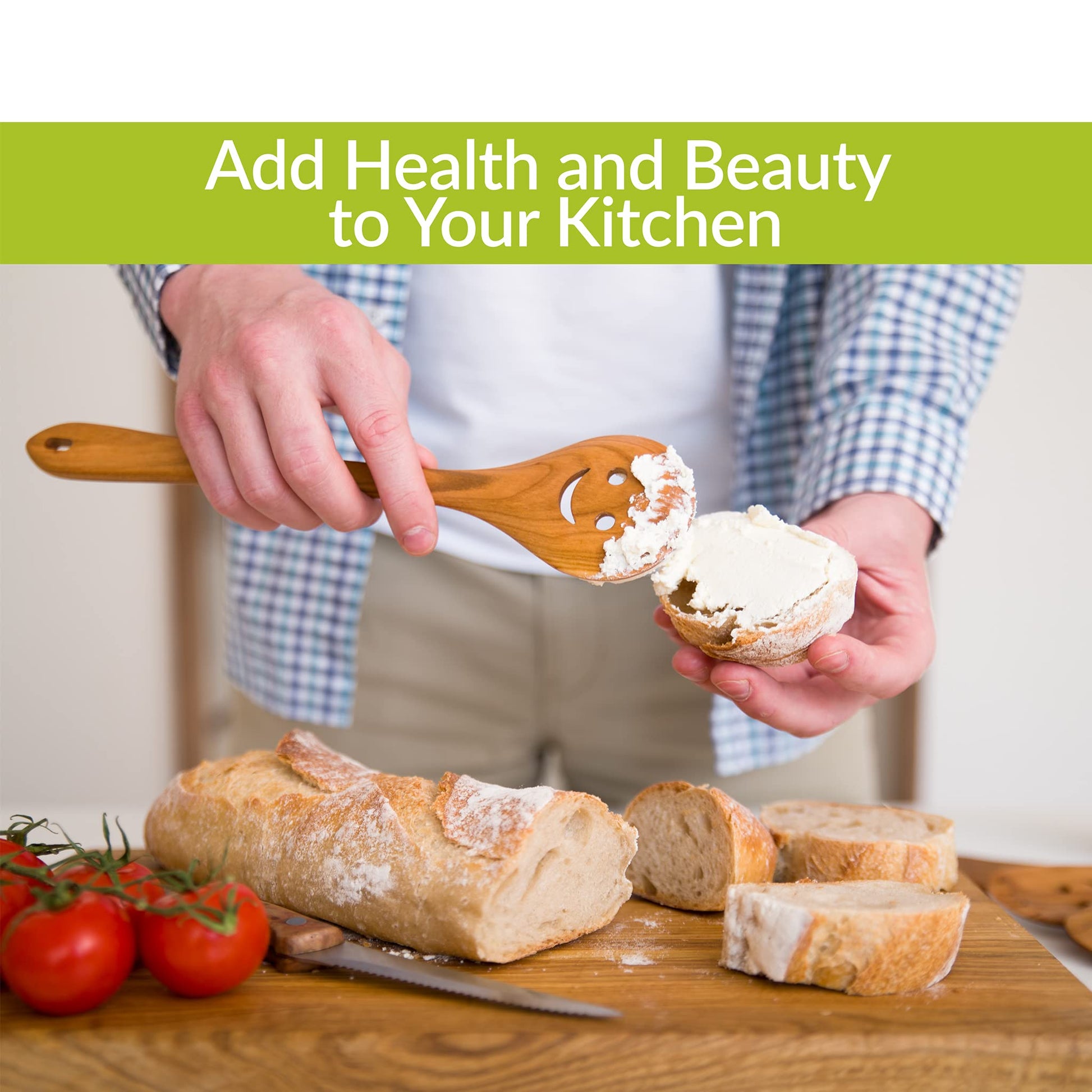 - Health CARE. BEAUTY & EASY OF USE! Lightweight and comfortable handle for stress-free cooking! Cherry Wood look to Compliment all of your Cooking & Serving Needs.