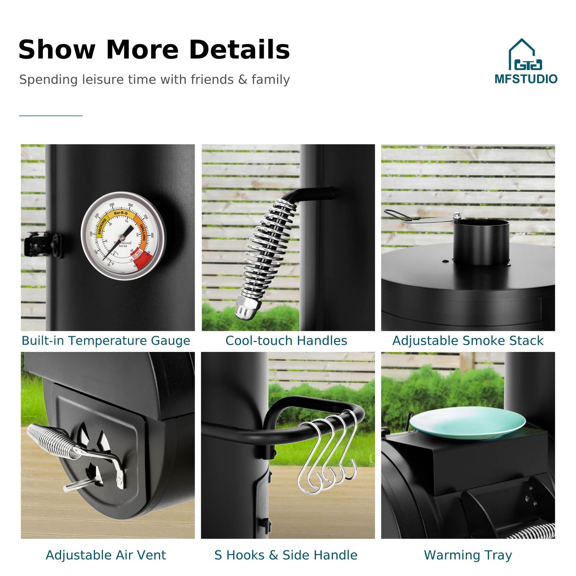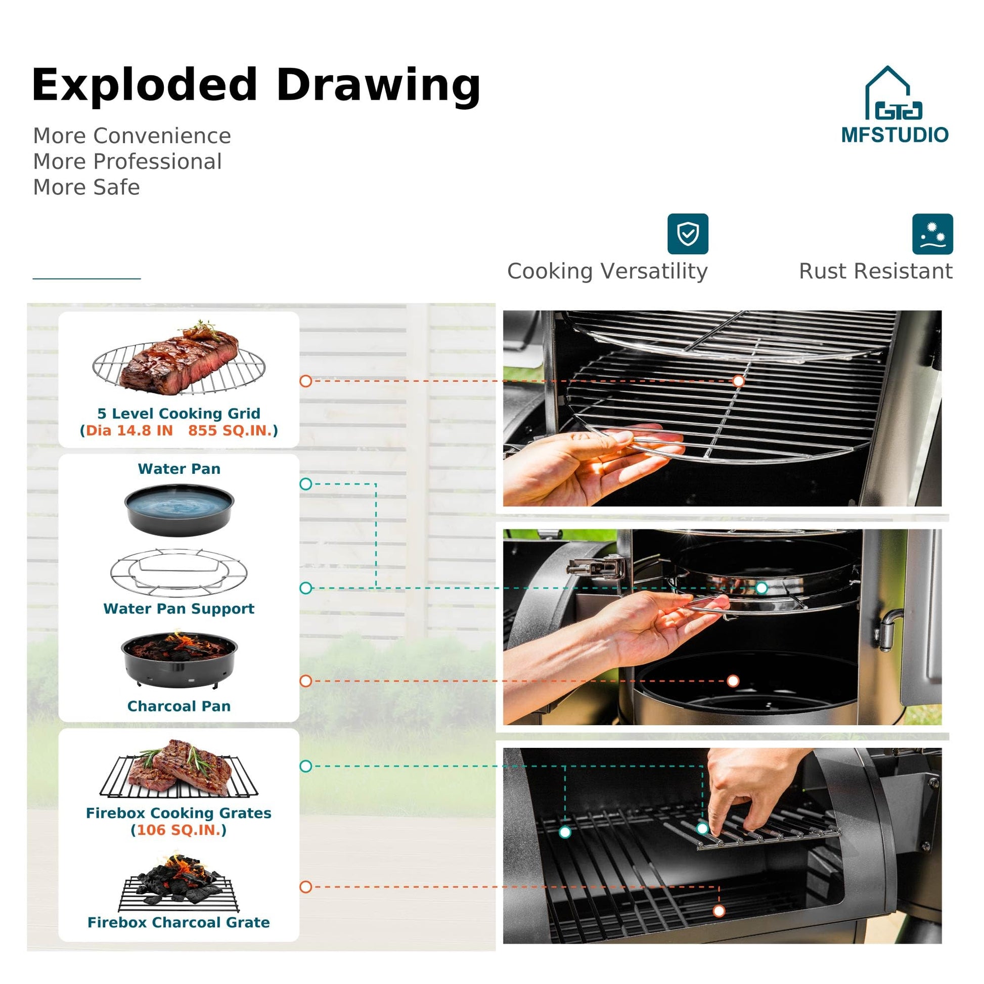 - Backup Support:With a 1-year backup support service from MFSTUDIO, you can buy confidently knowing that assistance via Amazon for any issues with your charcoal smoker grill