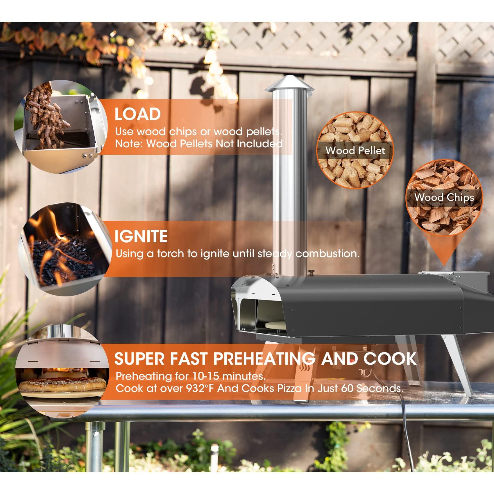 - 【Support Both Wood and Pellet as Fuel】 - Adding a special smoky wood flavor to food that gas ovens don't have.