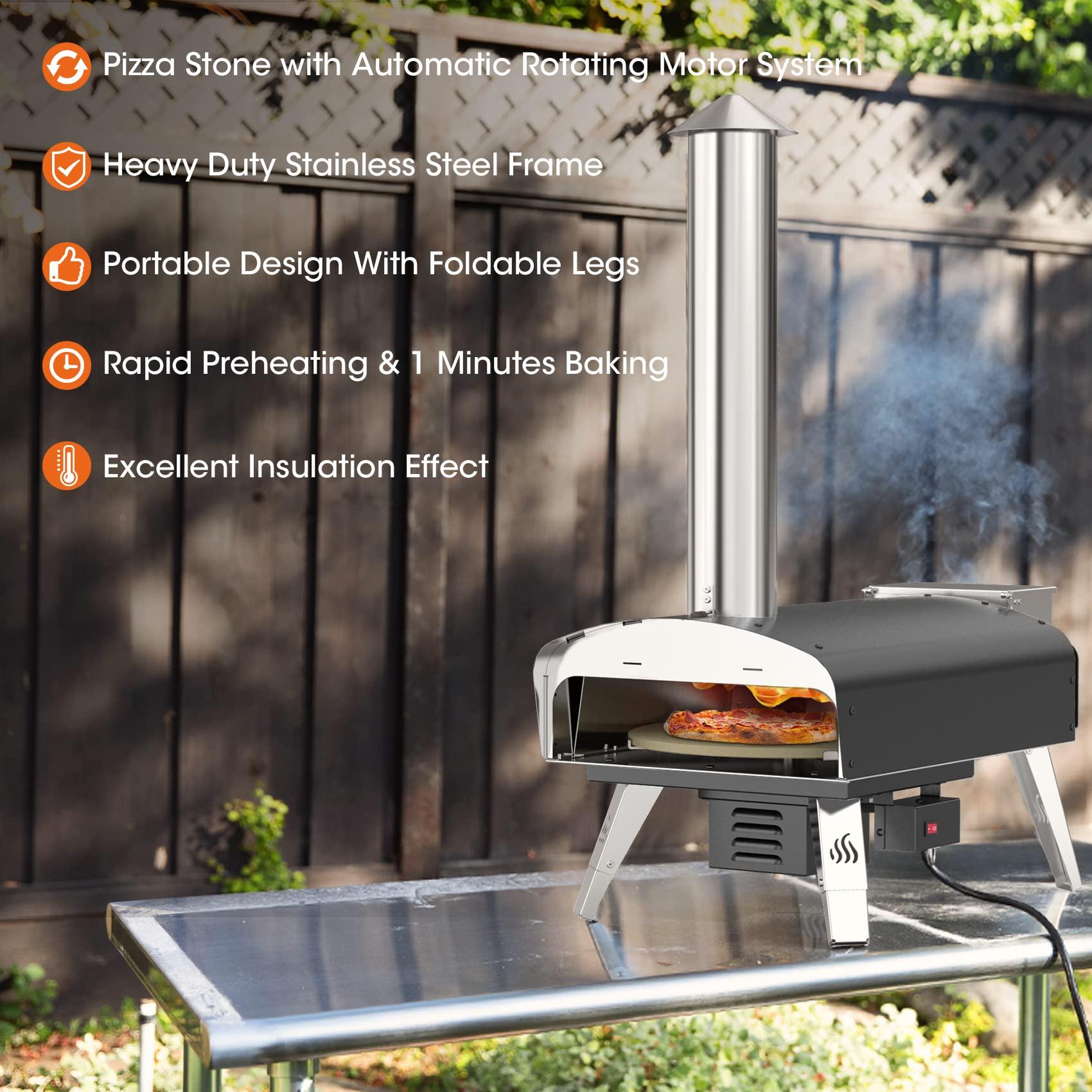 Mimiuo Outdoor Pizza Oven Wood Pellet Fired Pizza Stove with Automatic Rotating System, Pizza Stone, Pizza Peel and Carry Bag (Tisserie W-Oven Series) - Global Patent