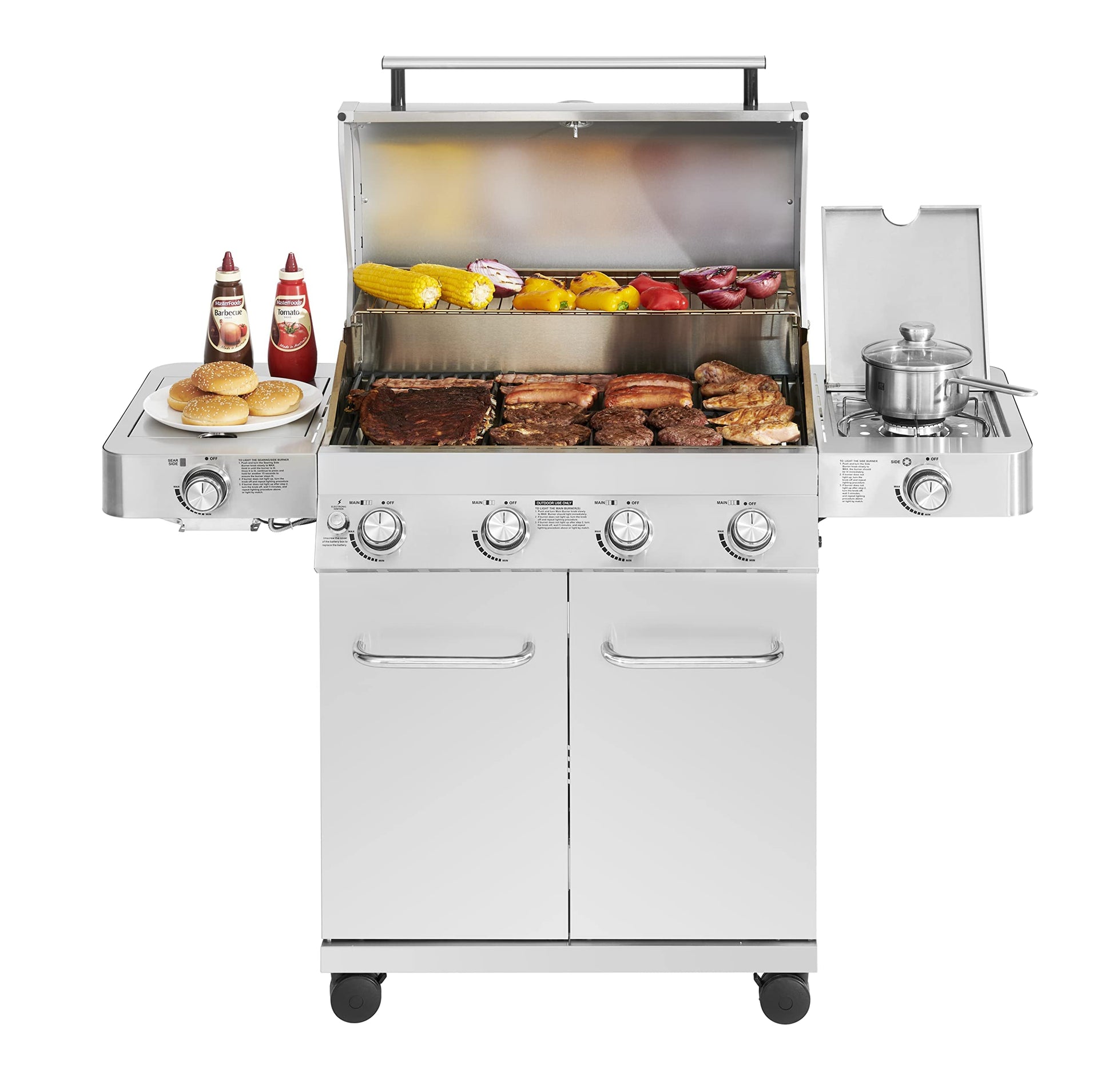 Monument Grills Larger 4-Burner Propane Gas Grills Stainless Steel with BBQ Cover(2 Items), Outdoor Use