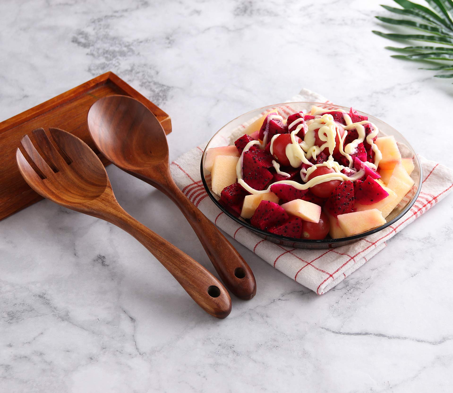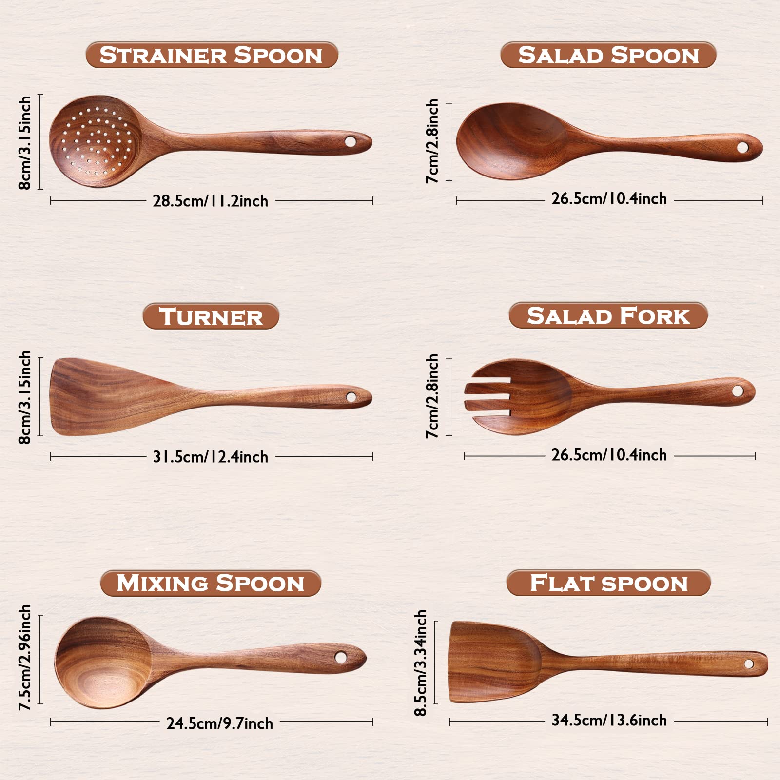 - 【Non-Toxic & Eco-Friendly】: The BPA free kitchen cooking utensils set is made of 100% great teak wood. No chemical substances, non-toxic, no peculiar smell for safe use. This wood material is hard, not easy to deform and crack. Long-term use that is still bright as new.