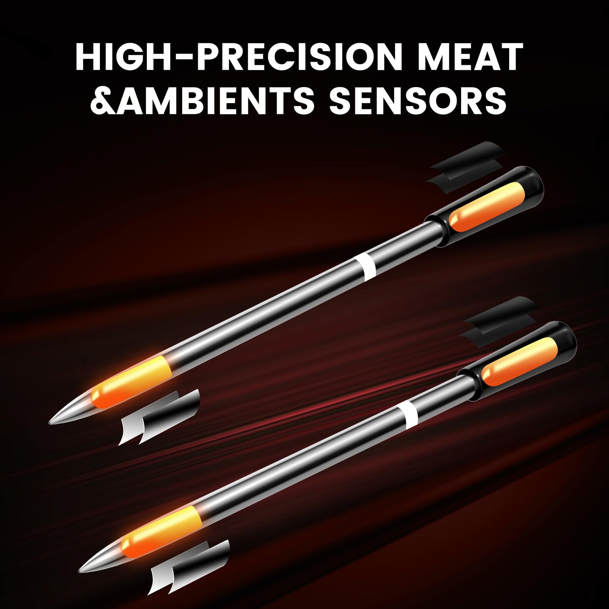 - Dual Temperature Monitoring: This smart wireless meat thermometer features a probe that simultaneously measures the internal temperature of the meat and the ambient temperature inside your grill or oven, making it effortless to know when to add wood or adjust the heat. Designed as a reliable food thermometer for cooking, it can monitor ambient temperatures up to 572°F, giving you precise control every time. Whether you’re grilling or roasting, this meat thermometer is a must-have for perfect results.