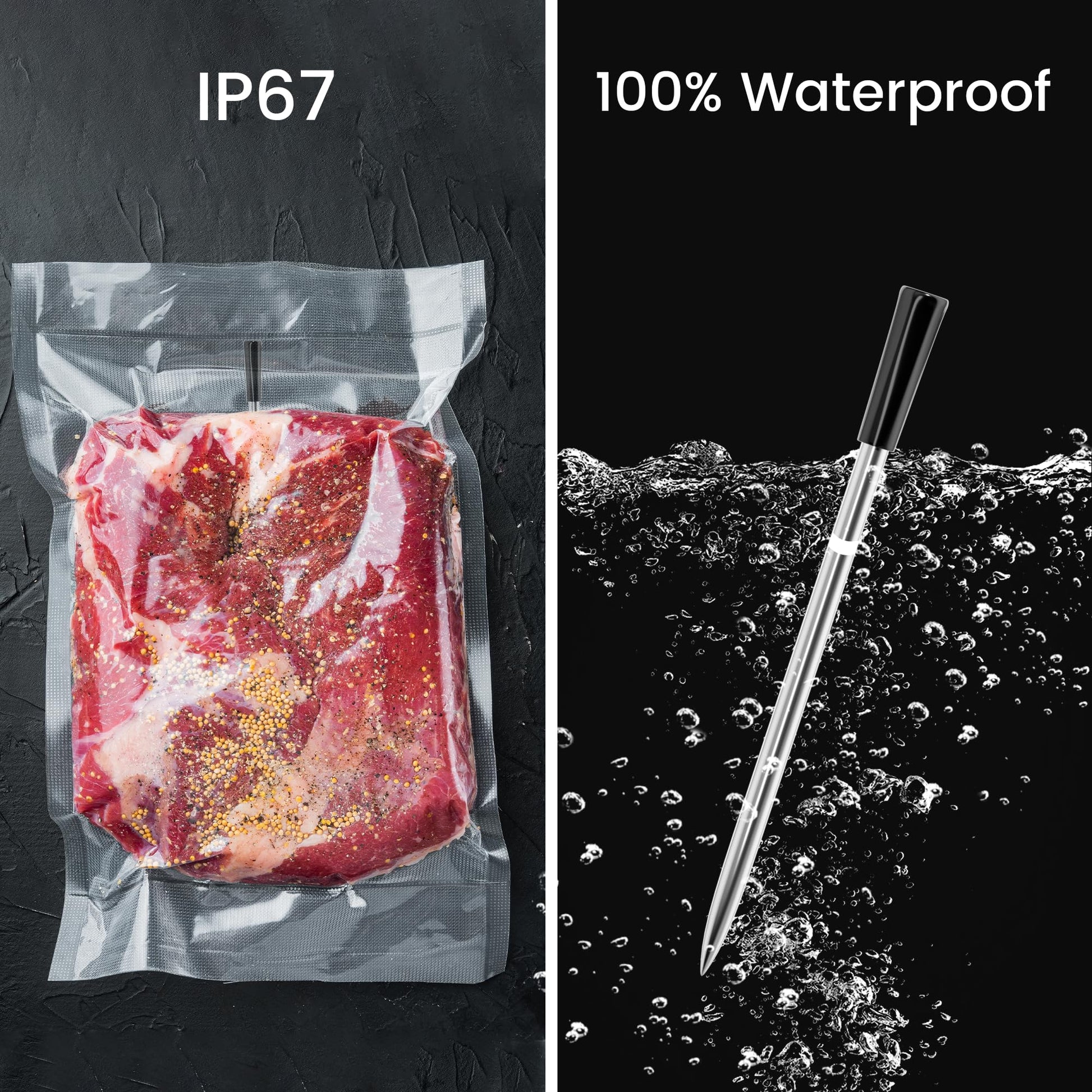 - User-Friendly Design: This meat thermometer for oven is designed with ease of use in mind. It’s IP67 waterproof and built to withstand tough conditions, making it the perfect digital cooking thermometer for any kitchen or outdoor grilling. Whether you’re monitoring with a thermometer meat device indoors or outdoors, it’s reliable and durable for every cooking scenario.