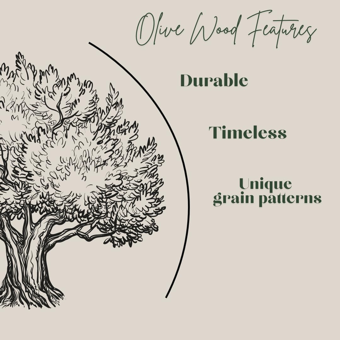 - SUSTAINABLY SOURCED OLIVE WOOD: Made from 100% natural, eco-friendly olive wood from Lesvos, Greece, known for its durability, stain resistance, and beautiful grain, this olive wood kitchen utensil is free from dyes and chemicals, making it an ideal choice for wooden cooking utensils and wooden serving spoons. Each piece showcases the unique qualities of sustainable olive wood, ensuring a one-of-a-kind addition to your kitchen tools collection.