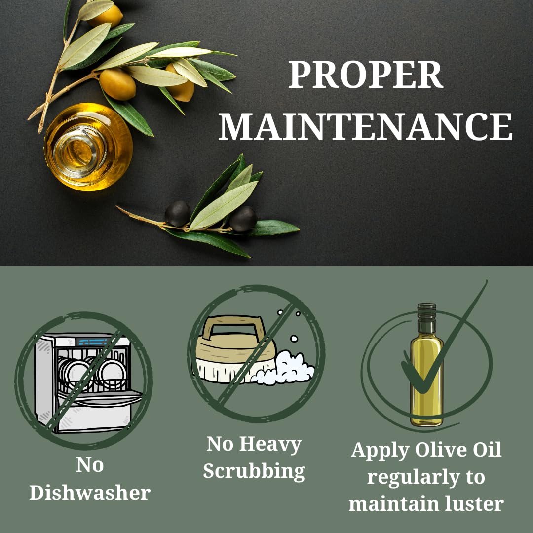 - EASY MAINTENANCE: To keep your wooden serving spoon in pristine condition, simply hand wash with mild soap and warm water. Dry thoroughly and occasionally apply a light coat of olive oil or natural mineral oil to preserve its natural luster, ensuring the longevity of this sustainable olive wood utensil.