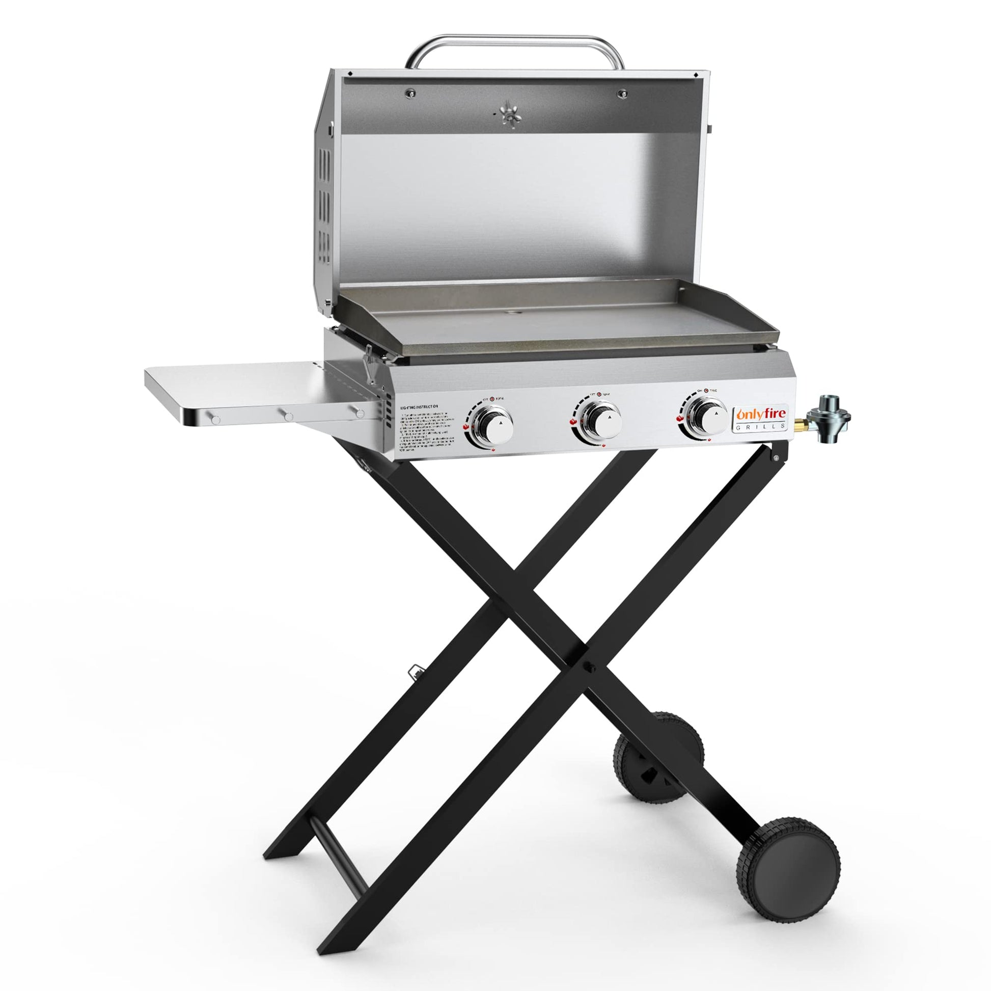 ONLYFIRE GRILLS Portable Propane Gas Griddle 3-Burner with Foldable Cart & Side Table, Flat Top Gas Grill Griddle Stove with Lid, for Outdoor Cooking Patio Backyard Camping RV Tailgating Beach, GS310