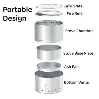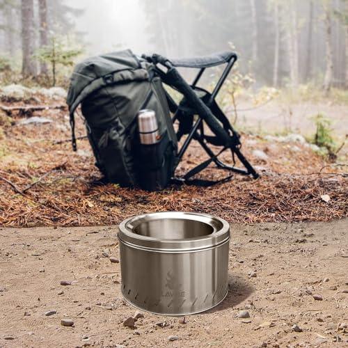 OutVue 15.3" Stainless Steel Smokeless Fire Pit with Grill & Bag, Outdoor Portable Wood Burning Fire Pits for Bonfire, Camping,Patio. Low Smoke Firepit for Outside with Cover