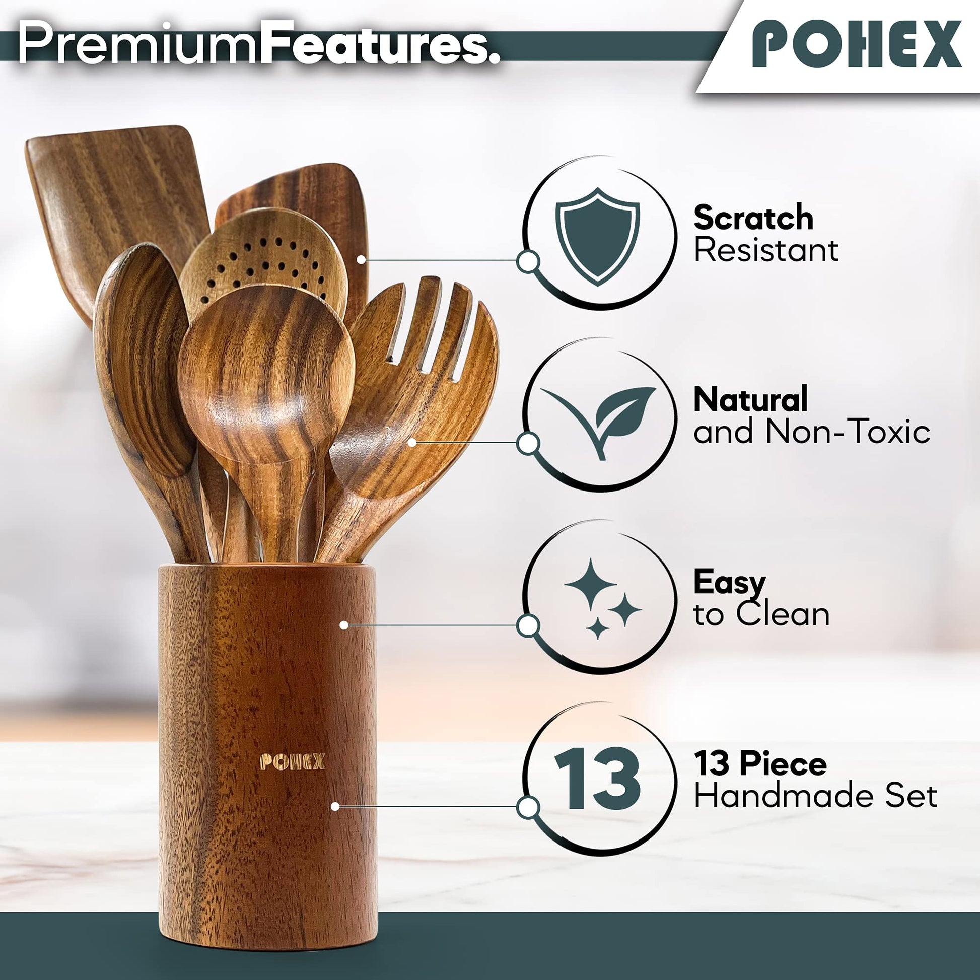 - Natural and Non-Toxic - Our BPA free wooden cooking gadgets are made from the finest quality natural teak wood, no dyes or artificial colors ever used or added to Pohex utensils.