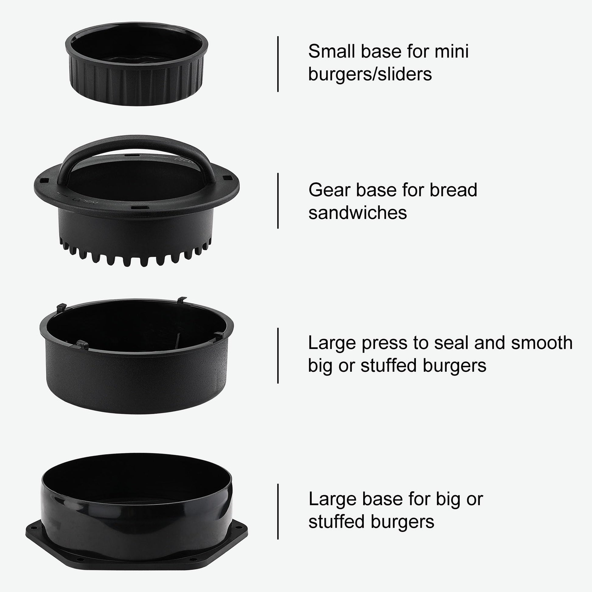- Multi-Functional Applications: The 4-in-1 Stuffed Burger Press Patty Maker allows you to create patties in various sizes just by switching and adjusting the mold with easy operations, without requiring any additional tools or complicated steps. This makes it effortless even for novice cooks to get started and enjoy the fun of making burgers.
