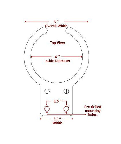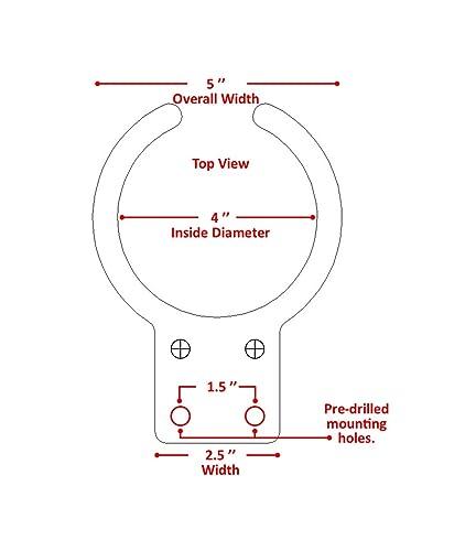 - The inside dimension of the cup holder is 4 inches in diameter. Overall dimensions are 7 inches x 5 Inches x 4 Inches. Top and bottom mount. Pre-drilled mounting holes. Made in USA