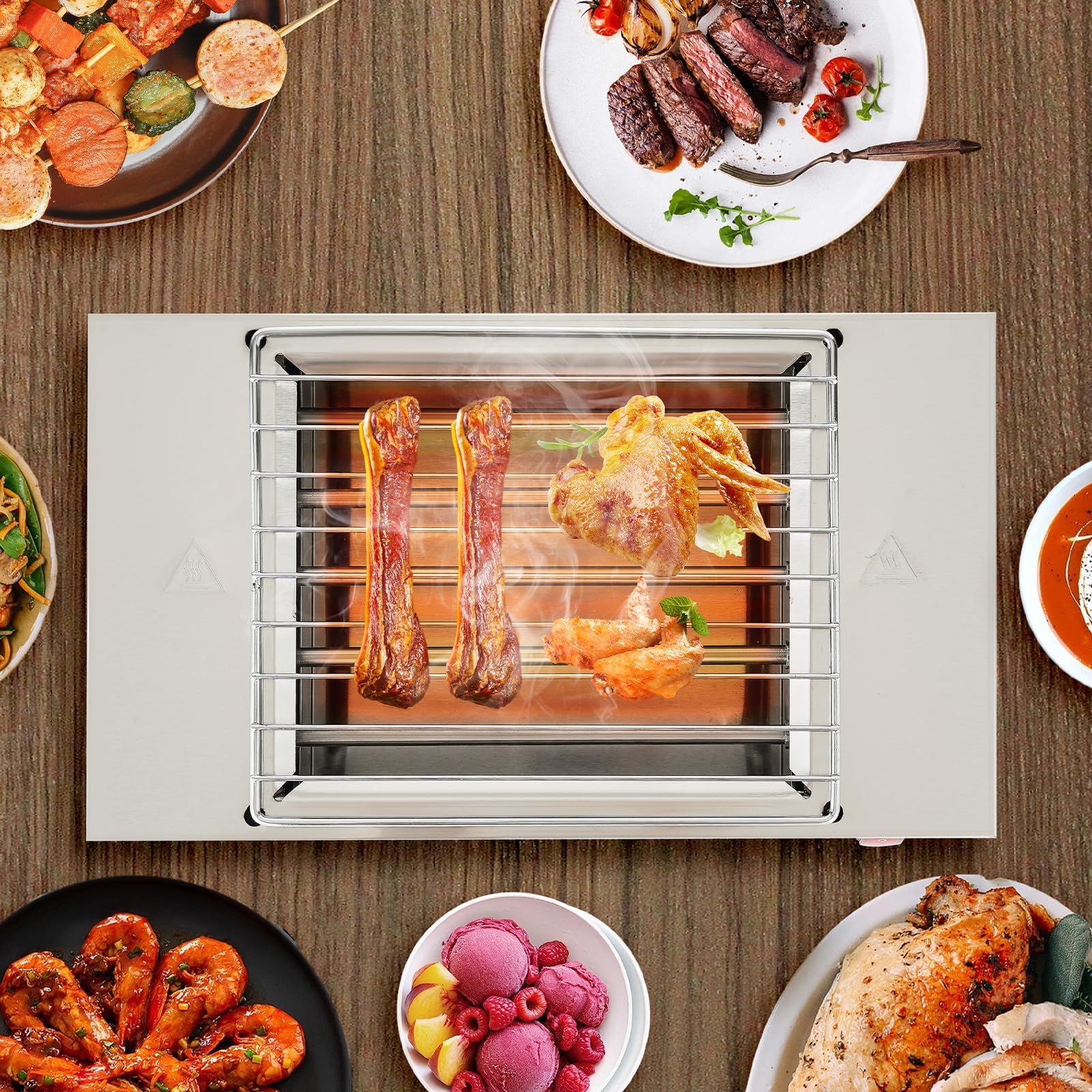 Portable Electric Grill 110V Indoor Smokeless Searing Grill Commercial Yakitori Griddle Stainless Steel Restaurant Korean BBQ Grill 446°F