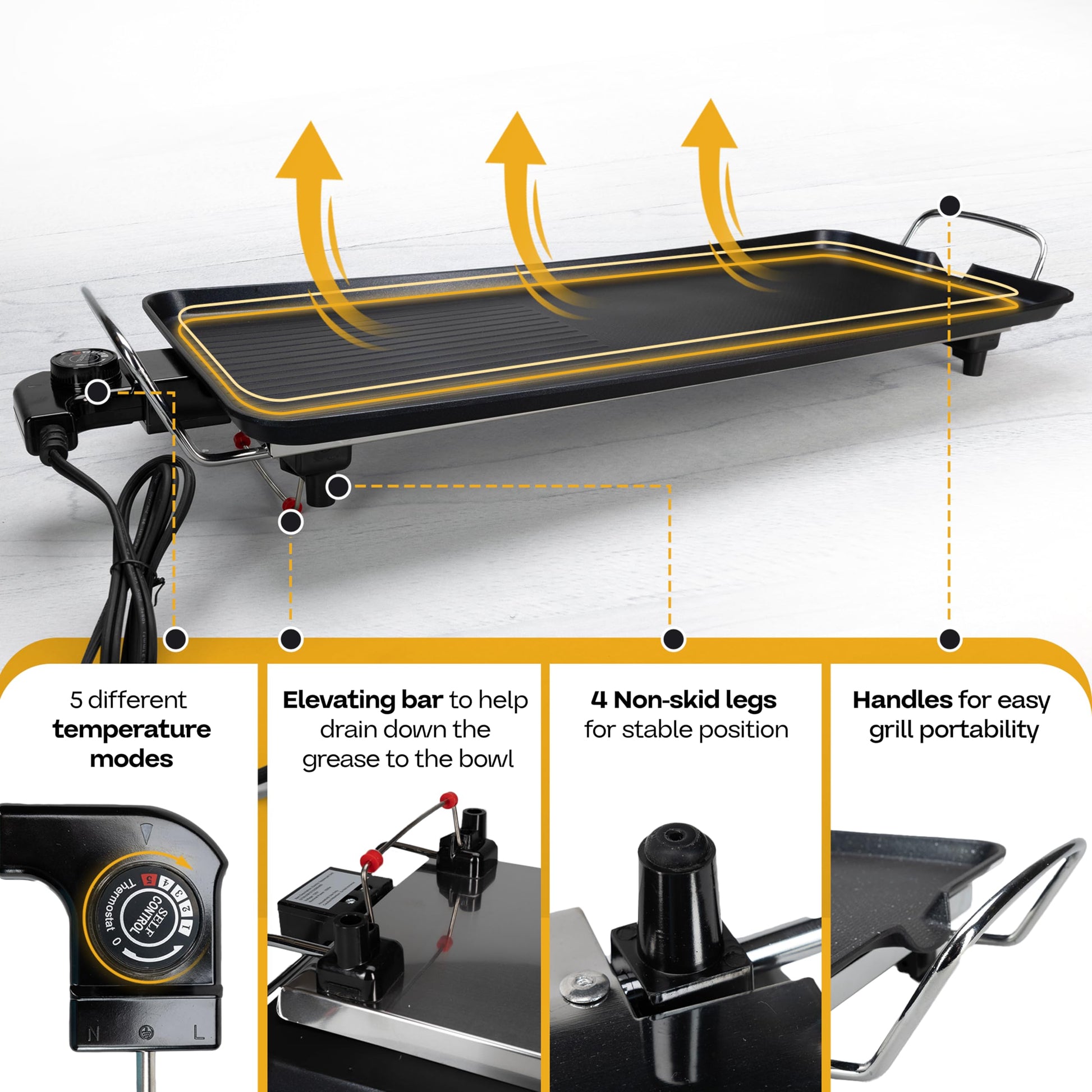 - VERSATILE COOKING: This electric griddle nonstick large seamlessly combines the features of a flat griddle electric and indoor griddle grill electric, perfect for a variety of dishes from pancake griddle electric to teppanyaki grill.
