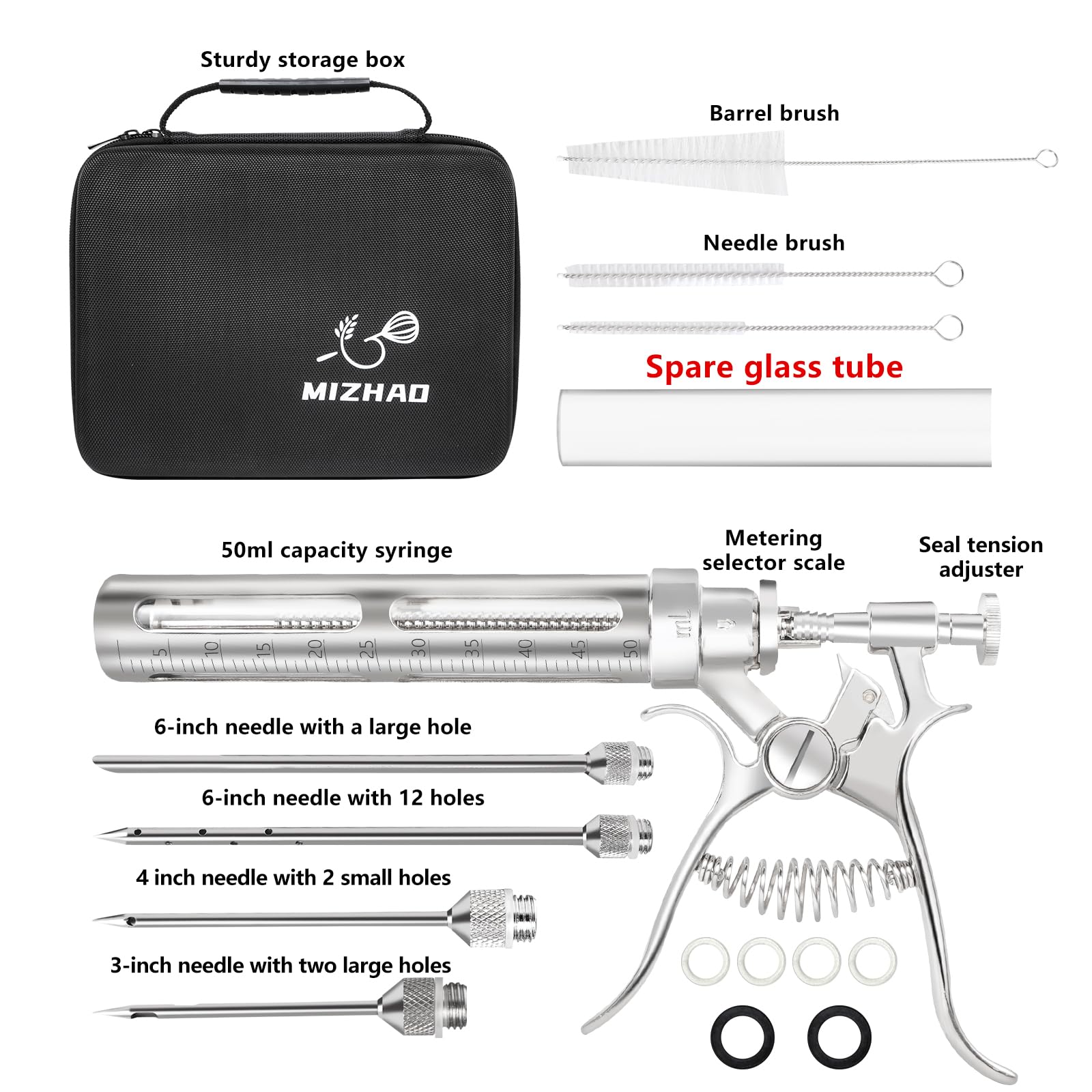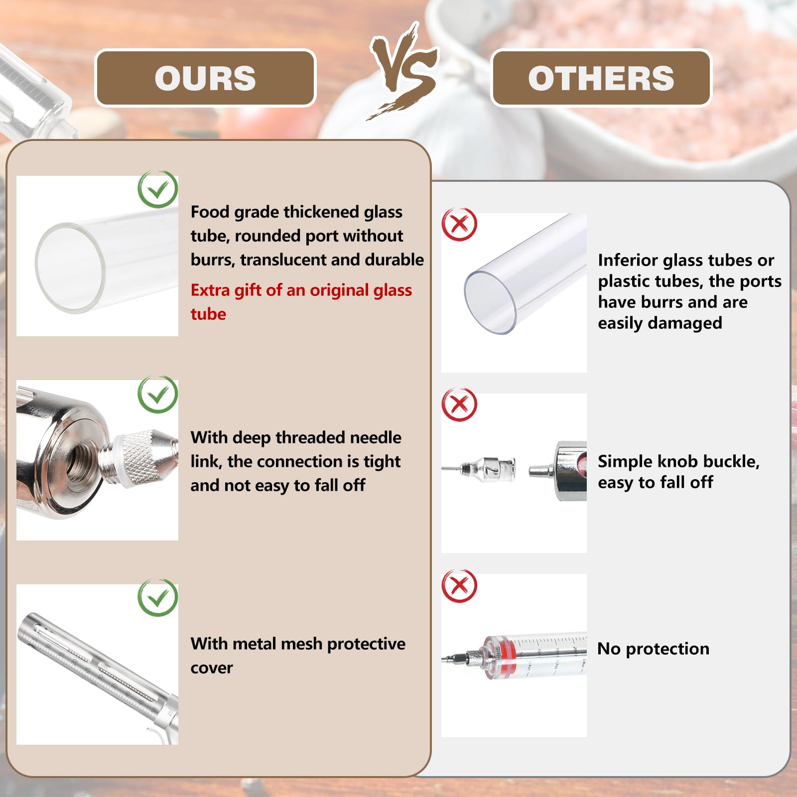 - Leak-Proof, Durable Design – Crafted with a thickened, food-grade stainless steel needle and upgraded, burr-free glass tube. Ensures tight connections and a smooth, leak-proof marinade injection every time, preventing spills and over-injection.