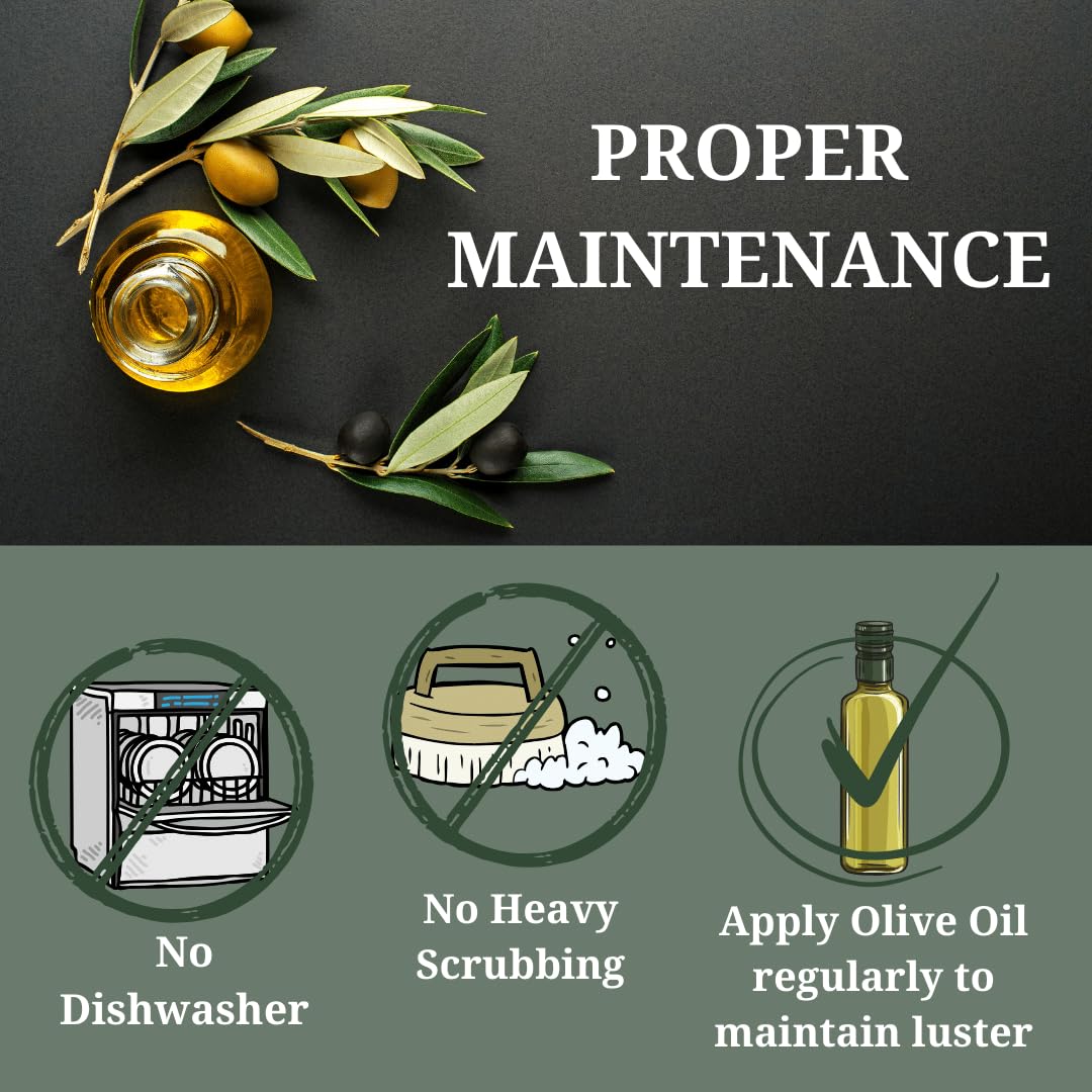 - EASY MAINTENANCE: To keep your wooden serving and cooking spoons in pristine condition, simply hand wash with mild soap and warm water. Dry thoroughly and occasionally apply a light coat of olive oil or natural mineral oil to preserve its natural luster, ensuring the longevity of this sustainable olive wood utensil.