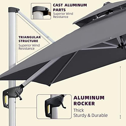 PURPLE LEAF 9' X 12' Patio Umbrella Outdoor Rectangle Umbrella Large Cantilever Umbrella Windproof Offset Umbrella Heavy Duty Sun Umbrella for Garden Deck Pool Patio, Grey