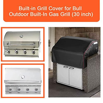 QuliMetal 30 Inch Built–in Grill Cover for Bull Gas Grills - Outdoor Products BBQ Grill Top Cover Replace for Bull 45005 Grill Head Cover with Elastic Hem, Waterproof & Windproof, 600D