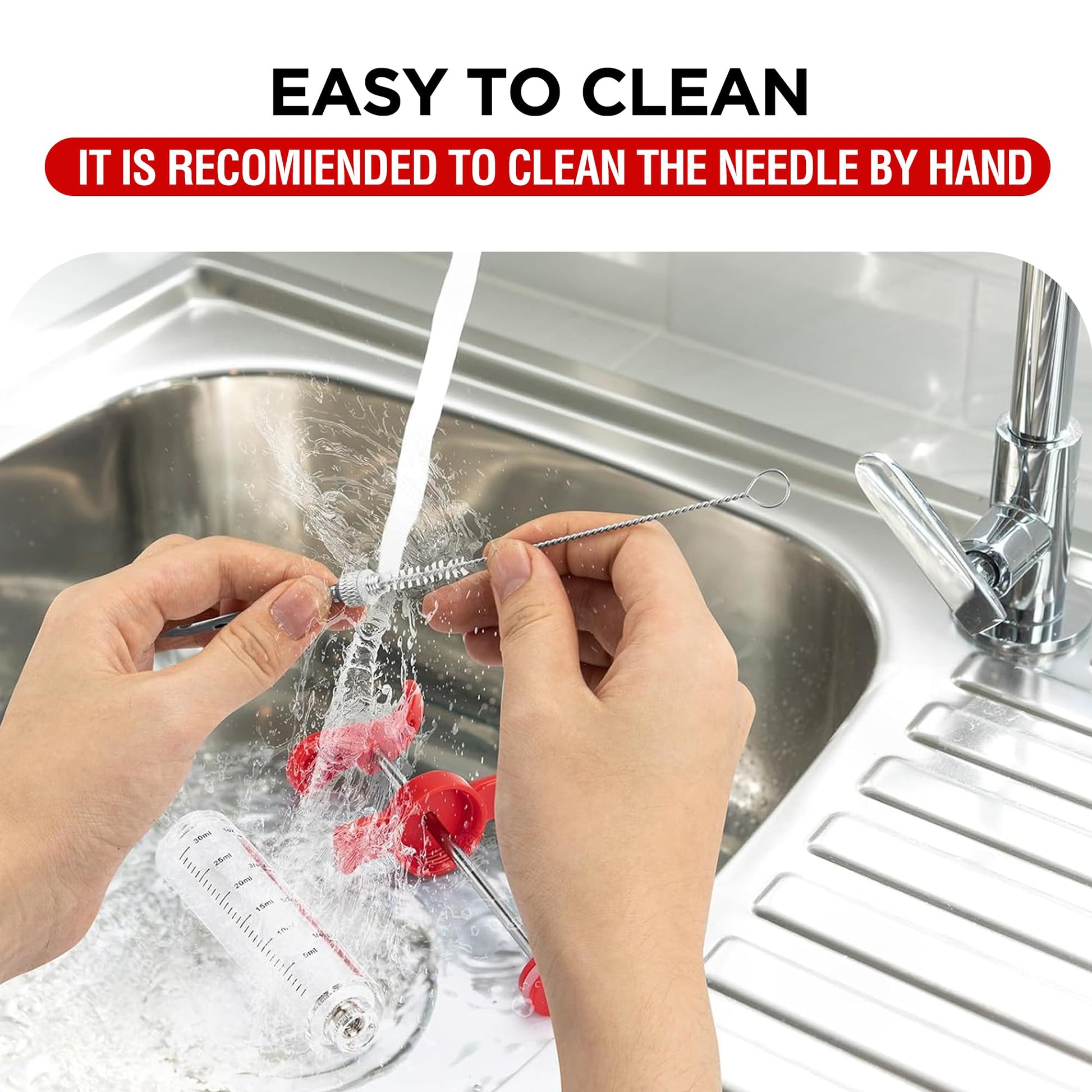- Easy-to-Use Design:This turkey injector features a simple and intuitive design, making it easy for anyone to use. The clear markings on the 1 oz capacity syringe allow precise measurement, and the ergonomic handle ensures a comfortable grip, allowing for smooth and controlled injections.